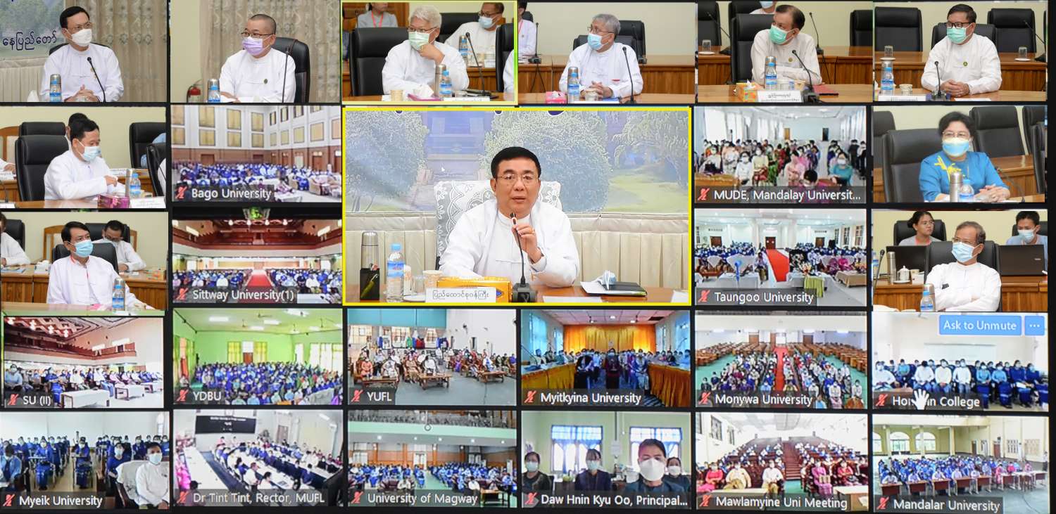 အခမ်းအနားသို့ ဒုတိယဝန်ကြီး ဦးဇော်ဝင်း၊ အမြဲတမ်းအတွင်းဝန် ဒေါက်တာစိုးဝင်း၊ ဦးစီးဌာနများမှ ညွှန်ကြားရေးမှူးချုပ်များ၊ ဒုတိယ အမြဲတမ်းအတွင်းဝန်များ၊ ဒုတိယ ညွှန်ကြားရေးမှူးချုပ်များနှင့် တာဝန်ရှိသူများတက်ရောက်ကြပြီး တက္ကသိုလ်များ၊ ပညာရေး ဒီဂရီကောလိပ်များမှ ပါမောက္ခချုပ်များ၊ ကျောင်းအုပ်ကြီးများ၊ ဒုတိယပါမောက္ခချုပ်များ၊ ပါမောက္ခများနှင့် အသစ်ခန့်အပ်သော သစ်လွင်နည်းပြ၊ သရုပ်ပြ ဆရာဆရာမများက ဗီဒီယိုကွန်ဖရင့်ဖြင့် တက်ရောက်ခဲ့ကြကြောင်း သိရသည်။