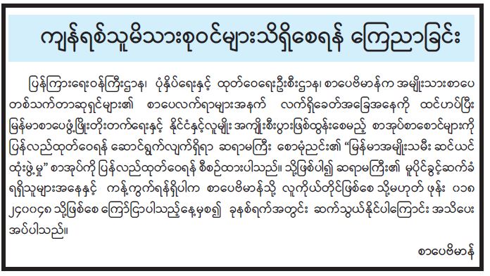 ဝန်ကြီးဌာန ကြေညာချက်များ