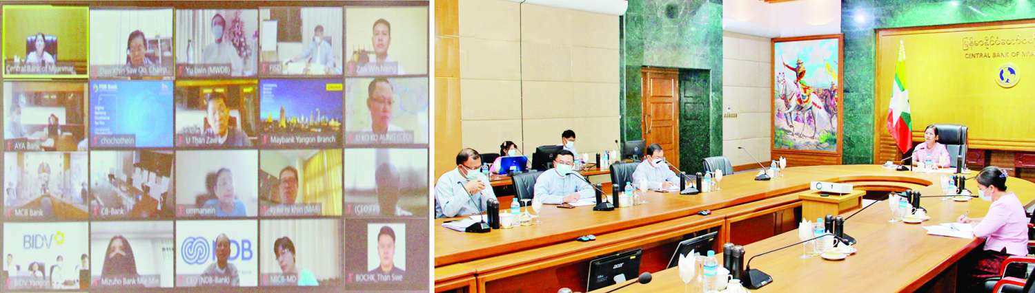 ထို့နောက် မြန်မာနိုင်ငံဘဏ်များအသင်းဥက္ကဋ္ဌက ဘဏ်များအနေဖြင့် မြန်မာနိုင်ငံတော်ဗဟိုဘဏ်၏ ညွှန်ကြားချက်များနှင့်အညီ လိုက်နာဆောင်ရွက်မှု အခြေအနေကို ဆွေးနွေး ပြောကြားပြီး တက်ရောက်လာကြသည့်ဘဏ်များမှ တာဝန်ရှိပုဂ္ဂိုလ်များက သိရှိလိုသည့် အချက်များနှင့် ဆောင်ရွက်ပေးစေလိုသည့် အချက်များကို တင်ပြကြရာ မြန်မာနိုင်ငံတော် ဗဟိုဘဏ်ဥက္ကဋ္ဌက လိုအပ်သည်များကို ပြန်လည်ရှင်းလင်း ဆွေးနွေးခဲ့သည်။