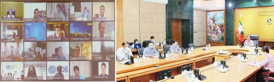 ထို့နောက် မြန်မာနိုင်ငံ ဘဏ်များအသင်းဥက္ကဋ္ဌက ဘဏ်များအနေဖြင့် မြန်မာနိုင်ငံတော် ဗဟိုဘဏ်၏ ညွှန်ကြားချက်များနှင့်အညီ လိုက်နာဆောင်ရွက်မှုအခြေအနေကို ဆွေးနွေးပြော ကြားပြီး တက်ရောက်လာကြသည့် ဘဏ်များမှ တာဝန်ရှိပုဂ္ဂိုလ်များက သိရှိလိုသည့်အချက်များနှင့် ဆောင်ရွက်ပေးစေလိုသည့် အချက်များကို တင်ပြကြရာ မြန်မာနိုင်ငံတော်ဗဟိုဘဏ် ဥက္ကဋ္ဌကလိုအပ်သည်များကို ပြန်လည် ရှင်းလင်း ဆွေးနွေးခဲ့ကြသည်။