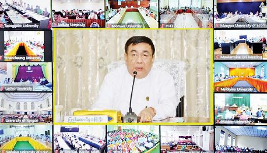 သို့ဖြစ်ပါ၍ KG+12 အောင်မြင် ပြီး တက္ကသိုလ် ဆက်လက် တက်ရောက် ပညာသင်ယူသူများ အတွက် သင်ရိုးညွှန်းတမ်းများ ချိတ်ဆက်မှု၊ ဆက်စပ်မှုရှိစေရေးကို ဝိုင်းဝန်း၍ စိစစ်ဆောင်ရွက် ကြရမည်ဖြစ်ကြောင်း၊ တက္ကသိုလ် ပထမနှစ် သင်ရိုးညွှန်းတမ်းနှင့် ချိတ်ဆက်မှုရှိ၊ မရှိ စိစစ်နိုင်ရေး အတွက် Grade 12 သင်ရိုး ညွှန်းတမ်း သို့မဟုတ် Grade 12 outlines များကို ချပြဆွေးနွေးရန် လိုအပ်ကြောင်း၊ သင်ရိုးညွှန်းတမ်း နှင့် ဘာသာရပ်ဆိုင်ရာ အရည် အသွေး တိုးတက်ကောင်းမွန် ရေးအတွက် ဘာသာရပ် သင်ကြားရေးအဖွဲ့ (Board of studies) တွင် ခင်မင်ရင်းနှီးမှုကို အခြေခံသည့် ဖွဲ့စည်းခြင်းမျိုး မလုပ်ဘဲ အရည်အချင်းရှိသူများ၊ အငြိမ်းစားဆရာကြီးများ၊ ဘာသာ ရပ်ဆိုင်ရာ ကျွမ်းကျင်ပညာရှင် ကြီးများ၊ ရာထူးငယ်သော်လည်း ဘာသာရပ်ကျွမ်းကျင်သူ ဆရာများကို ဖိတ်ကြား၍ ပူးပေါင်း ဆောင်ရွက်ကြရန်နှင့် မဟာတန်းနှင့် ပါရဂူတန်း ပြင်ပကျမ်း ကြီးကြပ်သူ များအဖြစ် ဘာသာရပ်ဆိုင်ရာ ကျွမ်းကျင်ပညာရှင်ကြီးများကို ထည့်သွင်းဖွဲ့စည်းသွားကြရန် တက္ကသိုလ်အားလုံးတွင် တာဝန်ရှိကြောင်း၊ ပညာရေး နိမ့်ကျနေသည်ကို ကုစားနိုင်ရေး အတွက် လမ်းကြောင်းမှန်ကို ဝိုင်းဝန်းပူးပေါင်းရှာဖွေဆောင်ရွက် ကြရမည်ဖြစ်ကြောင်း၊ အုပ်စု မဖွဲ့ကြရန်နှင့် အားနည်းသူကို လက်တွဲခေါ်ပြီး တိုးတက်အောင် ဆောင်ရွက်ကြစေ လိုကြောင်း၊ ပညာရေးအရည်အသွေး မြင့်မား ရေးအတွက် စေတနာ၊ မေတ္တာ ရှေ့ထား၍ အားလုံးဝိုင်းဝန်း ပူးပေါင်းဆောင်ရွက် ကြစေလို ကြောင်းနှင့် ရာထူးတိုး၊ ရာထူး ပြောင်းရွှေ့မှုဆိုင်ရာ မူဝါဒများနှင့် စပ်လျဉ်း၍ ပြည်ထောင်စုဝန်ကြီး က ညှိနှိုင်းအစည်းအဝေးတွင် ရှင်းလင်းပြောကြားသည်။