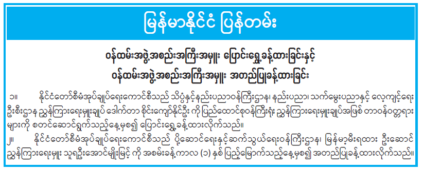 ဝန်ထမ်းအဖွဲ့အစည်းအကြီးအမှူး ပြောင်းရွှေ့ခန့်ထားခြင်းနှင့် ဝန်ထမ်းအဖွဲ့အစည်း အကြီးအမှူး အတည်ပြုခန့်ထားခြင်း 09/24/2022
