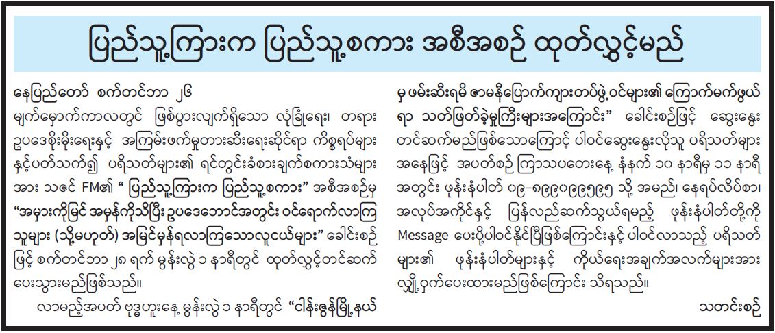 ပြည်သူ့ကြားက ပြည်သူ့စကား အစီအစဉ် ထုတ်လွှင့်မည်