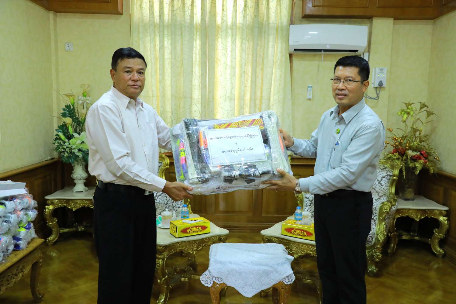 ယင်းနောက် ပြည်ထောင်စုဝန်ကြီးနှင့် အဖွဲ့သည် ဧရာဝတီတိုင်းဒေသကြီး အစိုးရအဖွဲ့ရုံး၌ ဝန်ကြီးချုပ်နှင့် တွေ့ဆုံ၍ အားကစားလောက ဖွံ့ဖြိုးတိုးတက်စေရေး၊ မျိုးဆက်သစ် အားကစား သမားများ ပေါ်ထွက်လာစေရေး တို့အတွက် ဆွေနွေးကြပြီး အားကစားအထောက် အကူပြုပစ္စည်း များပေးအပ်သည်။