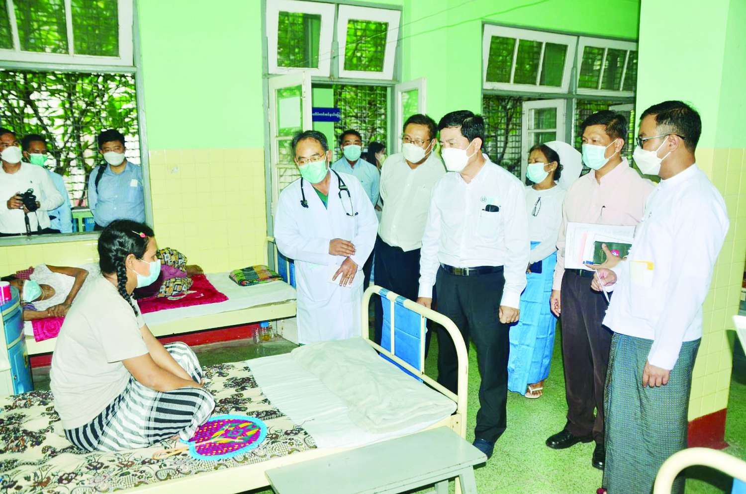 ထို့နောက် ပြည်ထောင်စုဝန်ကြီးသည် အလုပ်သမားဆေးရုံကြီး ပြင်ပလူနာဌာန၌ ပြင်ပလူနာများအား ဆေးကုသပေးနေမှုများ၊ အတွင်း လူနာကုသပေးသည့် ကုသဆောင်များ၊ ကိုဗစ်-၁၉ စောင့်ကြည့် လူနာများထားရှိသည့် ကုသဆောင်များနှင့် ပြင်ပလူနာဌာနတို့ကို ကြည့်ရှုစစ်ဆေးခဲ့ကြောင်း သိရသည်။