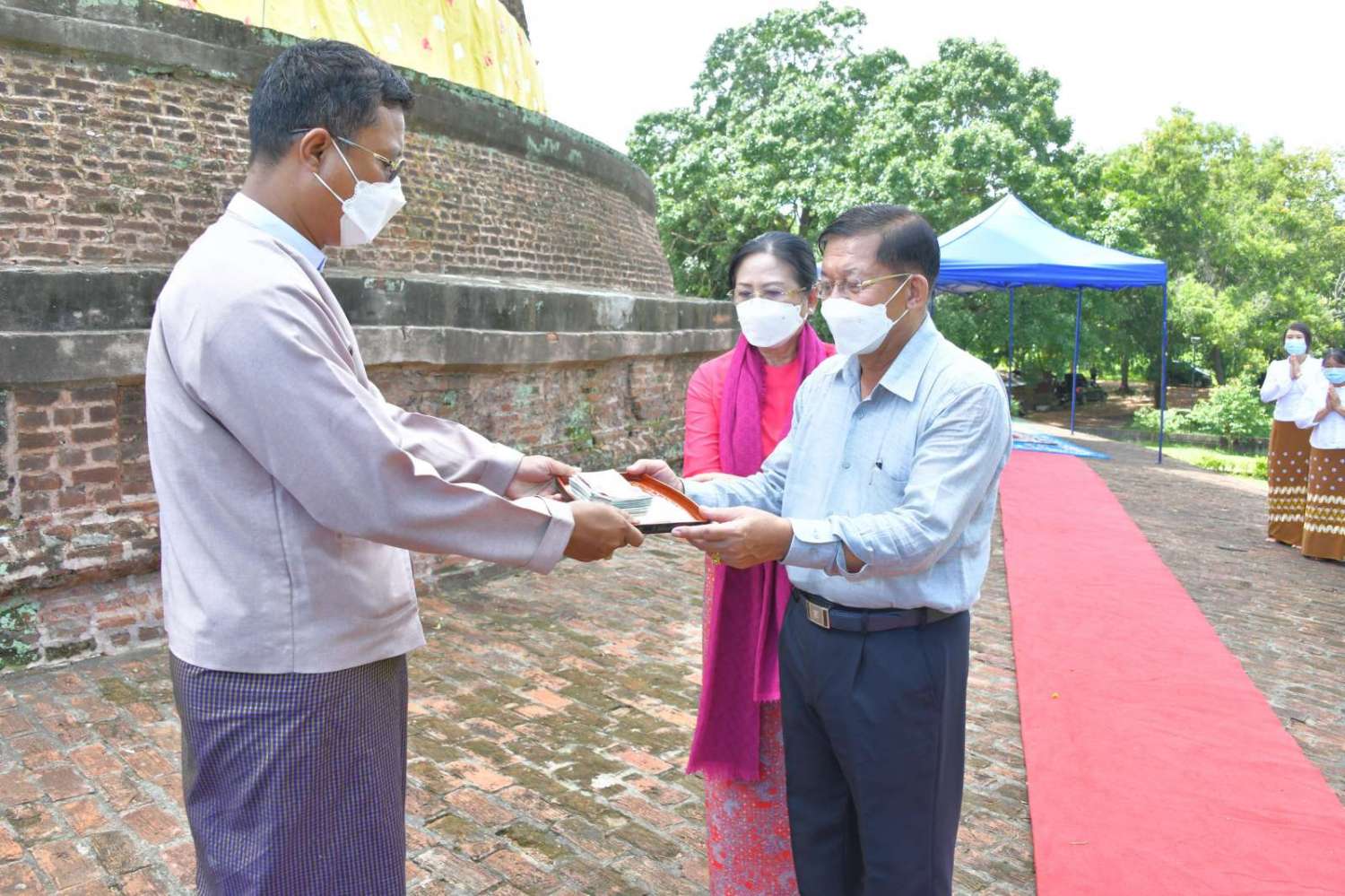 ယင်းနောက် နိုင်ငံတော်စီမံအုပ်ချုပ်ရေးကောင်စီဥက္ကဋ္ဌ နိုင်ငံတော်ဝန်ကြီးချုပ်သည် သီရိခေတ္တရာပြတိုက် ဧည့်သည်တော်မှတ်တမ်းတွင် လက်မှတ်ရေးထိုးသည်။ ထို့နောက် သရေခေတ္တရာ ယဉ်ကျေးမှုဇုန်အတွင်းရှိ နန်းတော်ရာနေရာသို့ သွားရောက်၍ ထိန်းသိမ်းထားရှိမှုများအား ကြည့်ရှုစစ်ဆေးပြီး နန်းတော်ရာတွင်ရှိနေသည့် ကျုံး ပြန်လည်တူးဖော်ရန် မှာကြားသည်။ ဆက်လက်၍ ရှေးဟောင်းသမိုင်းဝင် ဘောဘောကြီးစေတီသို့ သွားရောက်ဖူးမြော်ကြည်ညိုပြီး ပန်း၊ ရေချမ်း ကပ်လှူပူဇော်သည်။ ယင်းနောက် စေတီတော်ကြီး ဘက်စုံပြုပြင်မွမ်းမံရန် အလှူငွေများ ပေးအပ်လှူဒါန်းခဲ့ပြီး အမှတ်တရ စုပေါင်းဓာတ်ပုံ ရိုက်ကြသည်။