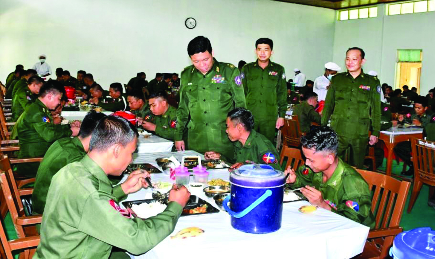 ထိုသို့ ဆောင်ရွက်လျက်ရှိရာ ယနေ့တွင် အရှေ့တောင်တိုင်းစစ်ဌာနချုပ်၊ ကမ်းရိုးတန်းဒေသ တိုင်းစစ်ဌာနချုပ်နှင့် ရန်ကုန်တိုင်းစစ်ဌာနချုပ်တို့မှ တိုင်းမှူးများနှင့် တာဝန်ရှိသူများက သက်ဆိုင်ရာ ကွပ်ကဲမှုအောက်ရှိ တပ်ရင်း/တပ်ဖွဲ့များနှင့် နယ်မြေခံ သင်တန်းကျောင်းများသို့ သွားရောက်၍ အရာရှိ၊ စစ်သည်၊ မိသားစုများအား ရင်းရင်းနှီးနှီးတွေ့ဆုံ နှုတ်ဆက်ပြီး ဂုဏ်ပြုစားပွဲများပြုလုပ်ပေး၍ တက်ရောက်အားပေးကာ အရာရှိ၊ စစ်သည်၊ မိသားစုများနှင့် အတူတကွ လက်ရေတစ်ပြင်တည်း နေ့လယ်စာသုံးဆောင်ခဲ့ကြသည်။