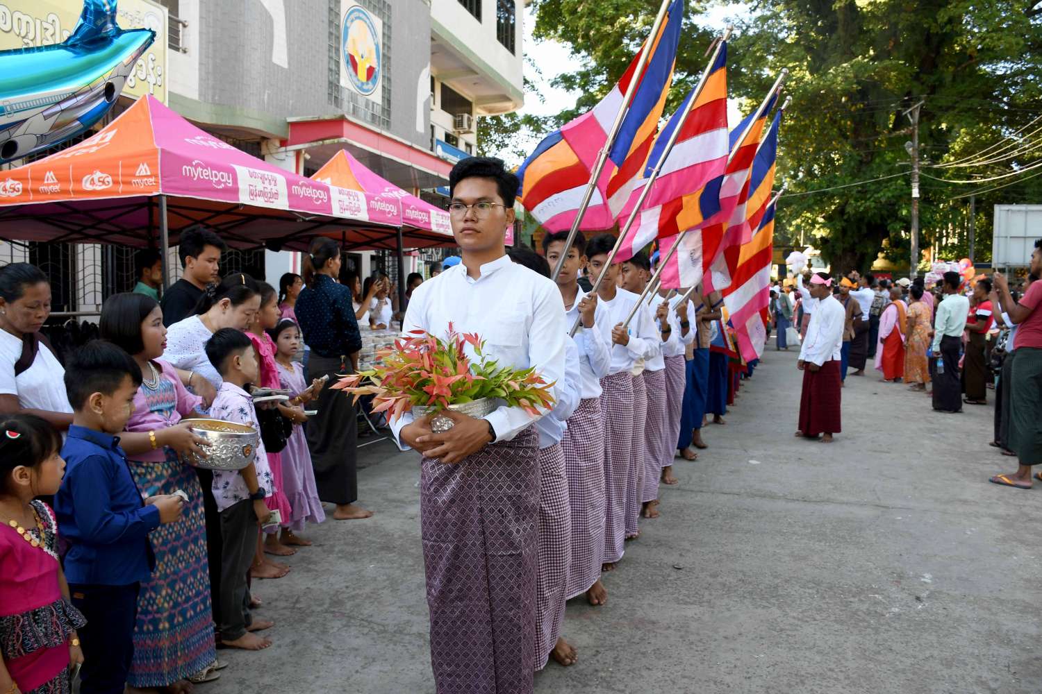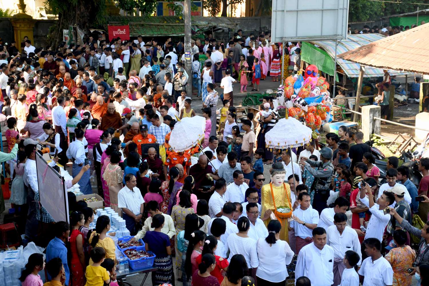 ထို့နောက် နိုင်ငံတော် စီမံအုပ်ချုပ်ရေး ကောင်စီဝင်၊ ပြည်နယ်ဝန်ကြီးချုပ်၊ ပြည်နယ် အစိုးရအဖွဲ့ဝင်များ၊ ဌာနဆိုင်ရာများ၊ လူမှုရေး အဖွဲ့အစည်းများ၊ စေတနာရှင် အလှူရှင်များက ဆရာတော် သံဃာတော်များနှင့် သီလရှင်များအား ဆွမ်းဆန်တော်များ၊ အချိုရည်နှင့် လှူဖွယ်ဝတ္ထု ပစ္စည်းများအား စေတနာထက်သန်စွာဖြင့် ပါဝင် ကုသိုလ်ယူလှူဒါန်းကြသည်။