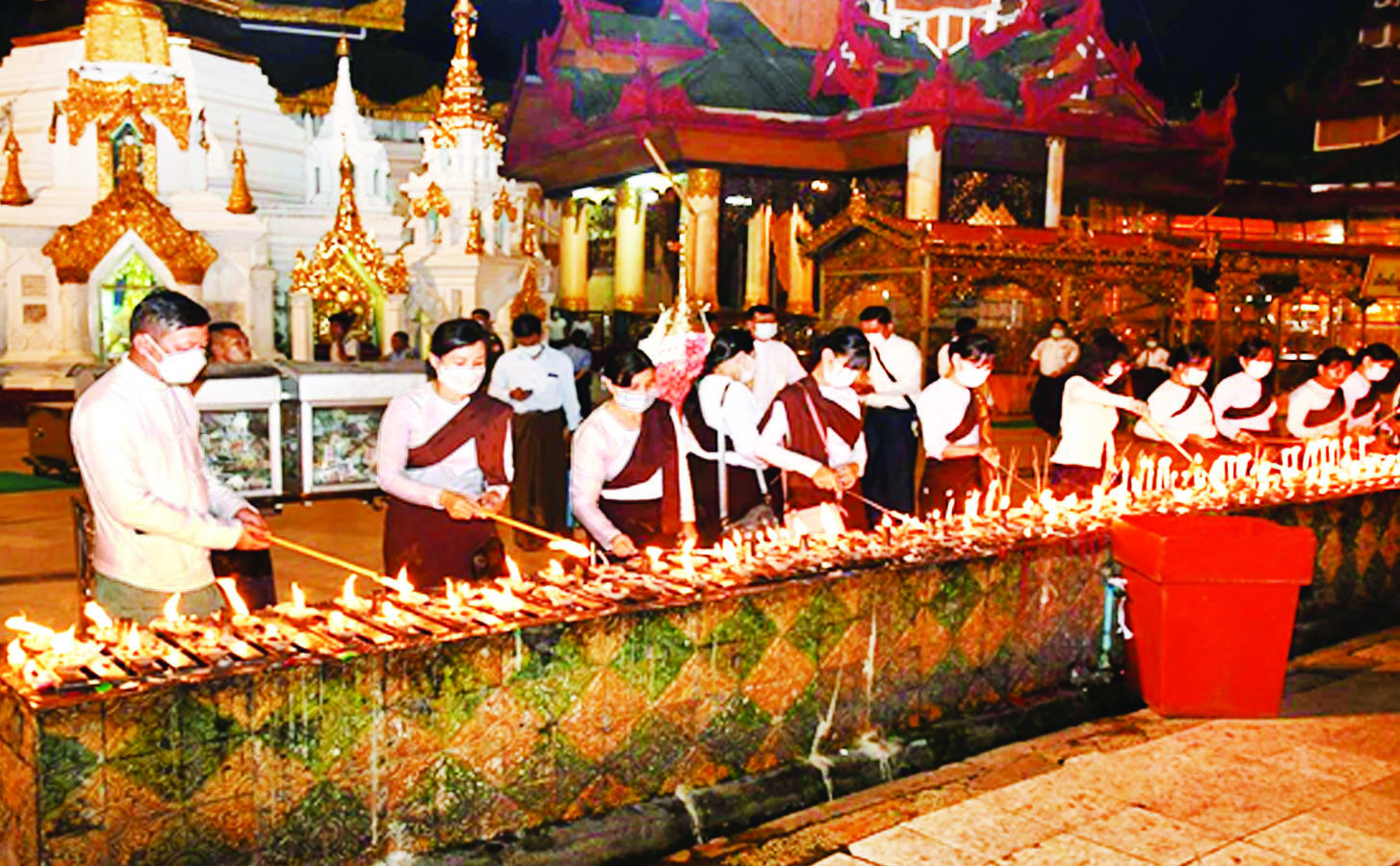 ၁၃၈၄ ခုနှစ် သီတင်းကျွတ်လပြည့်နေ့ အဘိဓမ္မာအခါတော်နေ့ အောက်တိုဘာ ၉ ရက်ညပိုင်းတွင် ရန်ကုန်တိုင်းဒေသကြီး ဒဂုံမြို့နယ်ရှိ ရွှေတိဂုံစေတီတော်မြတ်ကြီး စေတီတော်ရင်ပြင်ပတ်လည် ဆီမီးခုံများ၌ ရန်ကုန်တိုင်းစစ်ဌာနချုပ် တိုင်းမှူး ဗိုလ်ချုပ် ညွန့်ဝင်းဆွေနှင့် တာဝန်ရှိသူများ၊ ဘုရားဖူးပြည်သူများက ဆီမီး ၁၀၀၀၀ ကို ထွန်းညှိပူဇော်ကြသည်။