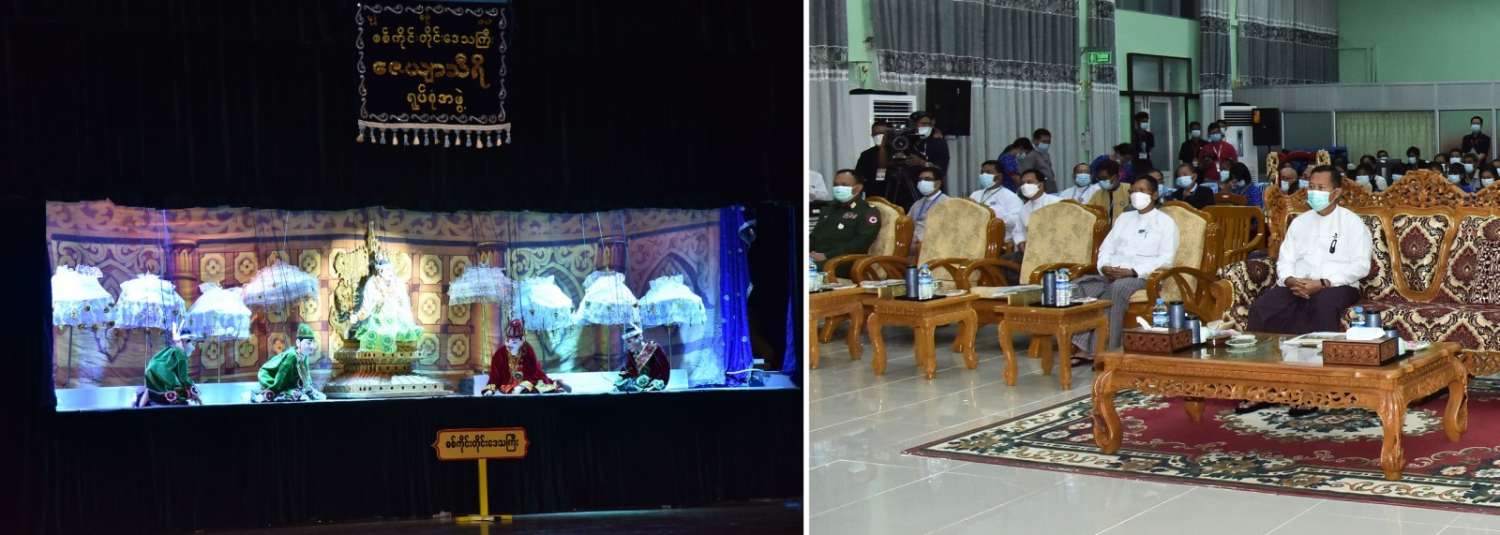 (၂၃)ကြိမ်မြောက် မြန်မာ့ရိုးရာယဉ်ကျေးမှု အဆို၊ အက၊ အရေး၊ အတီးပြိုင်ပွဲ ကျင်းပရေးဦးစီးကော်မတီ နာယက၊ နိုင်ငံတော်စီမံအုပ်ချုပ်ရေးကောင်စီ ဒုတိယဥက္ကဋ္ဌ ဒုတိယဝန်ကြီးချုပ် ဒုတိယဗိုလ်ချုပ်မှူးကြီးစိုးဝင်းသည် ယနေ့ညနေပိုင်းတွင် သာသနာရေးနှင့်ယဉ်ကျေးမှုဝန်ကြီးဌာနရှိ ယဉ်ကျေးမှုရတနာခန်းမ၌ကျင်းပသည့် ရုပ်စုံသဘင်အဖွဲ့လိုက်ပြိုင်ပွဲသို့ တက်ရောက်ကြည့်ရှုအားပေးသည်။