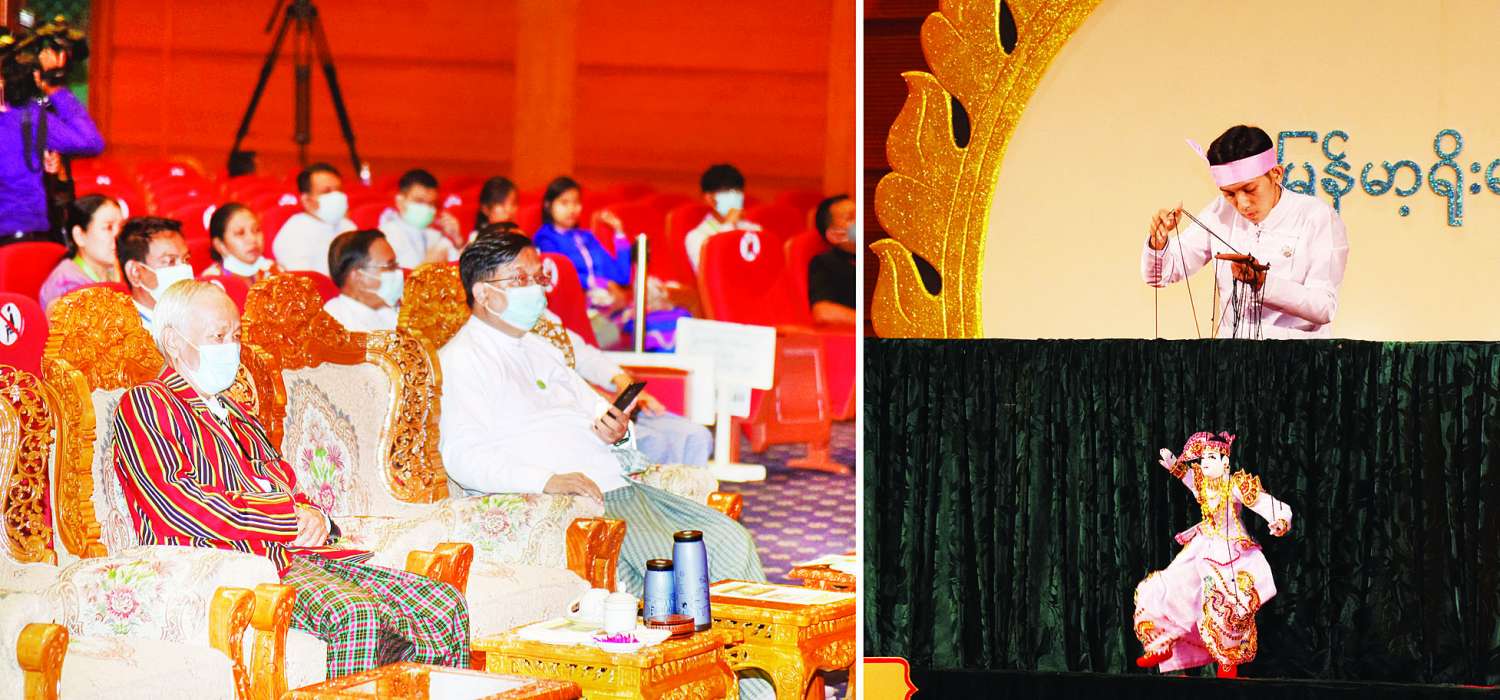 နိုင်ငံတော်စီမံအုပ်ချုပ်ရေးကောင်စီဝင် ဦးမောင်းဟာသည် ယနေ့မွန်းလွဲပိုင်းတွင် နေပြည်တော်ရှိ မြန်မာအပြည်ပြည်ဆိုင်ရာကွန်ဗင်းရှင်းဗဟိုဌာန(၂) Plenary Hall ၌ကျင်းပသည့် ရုပ်သေးကြိုးဆွဲပြိုင်ပွဲသို့တက်ရောက်ပြီး ပြိုင်ပွဲဝင်များ၏ ယှဉ်ပြိုင်နေမှုကို ကြည့်ရှုအားပေးသည်။
