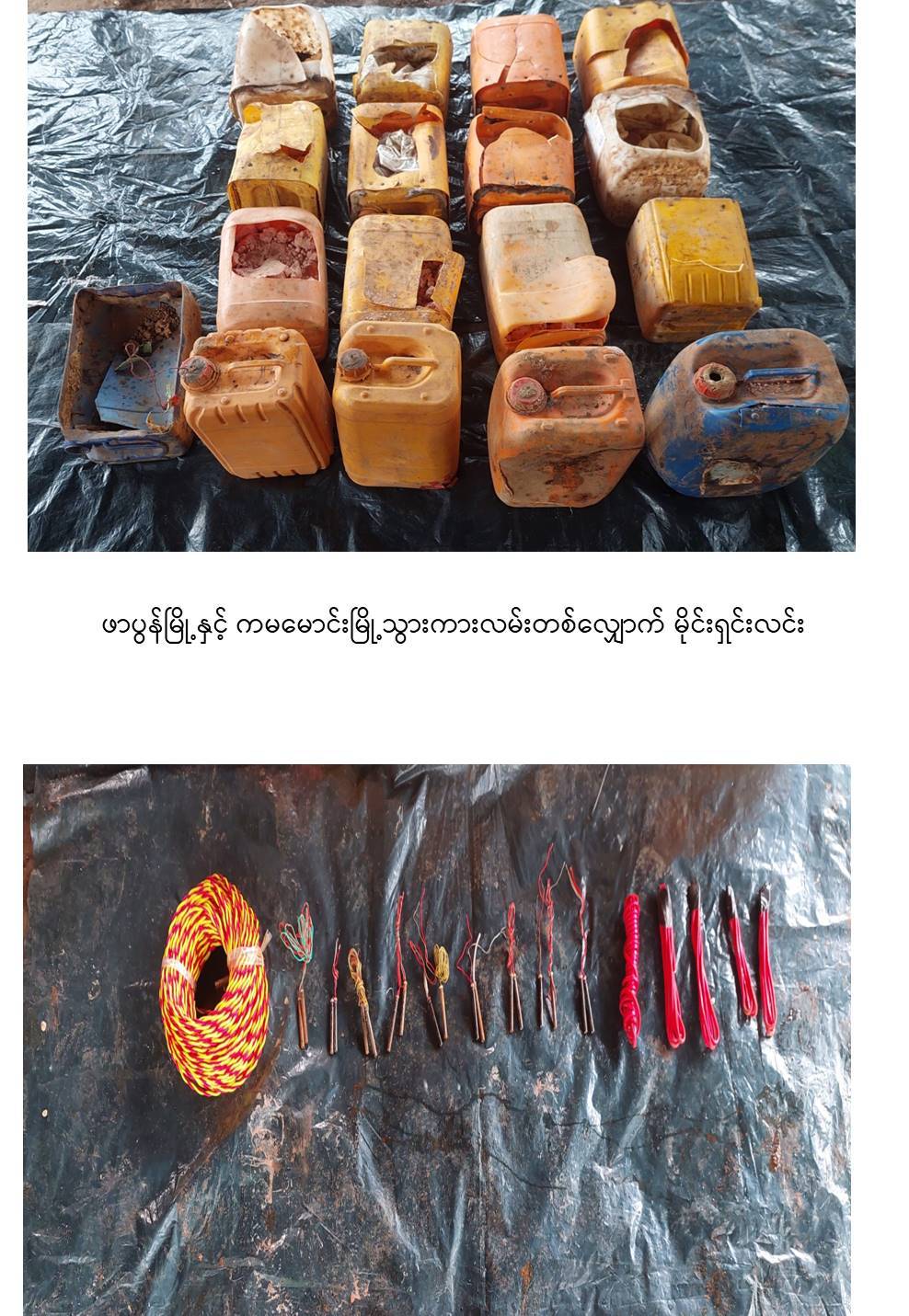 ထို့သို့ လုပ်ဆောင်လျက်ရှိရာ ကရင်ပြည်နယ်၊ ဖာပွန်မြို့နှင့် ကမမောင်းမြို့သွား ကားလမ်းတစ် တစ်လျှောက်၌လည်း အကြမ်းဖက်သမားများက လက်လုပ်မိုင်းများထောင်ထားကြောင်း အကြမ်းဖက်မှုကိုမလိုလားသည့် ဒေသခံပြည်သူများ၏ သတင်းပေးပို့ချက်အရ လုံခြုံရေးတပ်ဖွဲ့ဝင်များက စက်တင်ဘာ ၃၀ ရက် နံနက် ၈ နာရီခွဲမှ နေ့လယ် ၁ နာရီခွဲအထိ မိုင်းရှင်းလင်းရေးလုပ်ငန်းများ ဆောင်ရွက်ခဲ့ရာ အဆိုပါ ကားလမ်းဝဲ/ယာ တစ်လျှောက်မှ ၅ ဂါလံပုံးဖြင့် ပြုလုပ်ထားသည့် ဒေသန္တရလက်လုပ်ဆွဲမိုင်း ၂၃ လုံး၊ ပလပ်စတစ်ထမင်းဘူးဖြင့် ပြုလုပ်ထားသည့် ဒေသန္တရဆွဲမိုင်း ၂ လုံး၊ စနက်တံ ၁၇ ခုနှင့် ဆက်စပ်ပစ္စည်းများအား ထပ်မံရှာဖွေဖော်ထုတ်နိုင်ခဲ့ပြီး အများပြည်သူ အန္တရာယ်မဖြစ်ရေး သက်မဲ့ပြုလုပ်သိမ်းဆည်းခဲ့သည်။