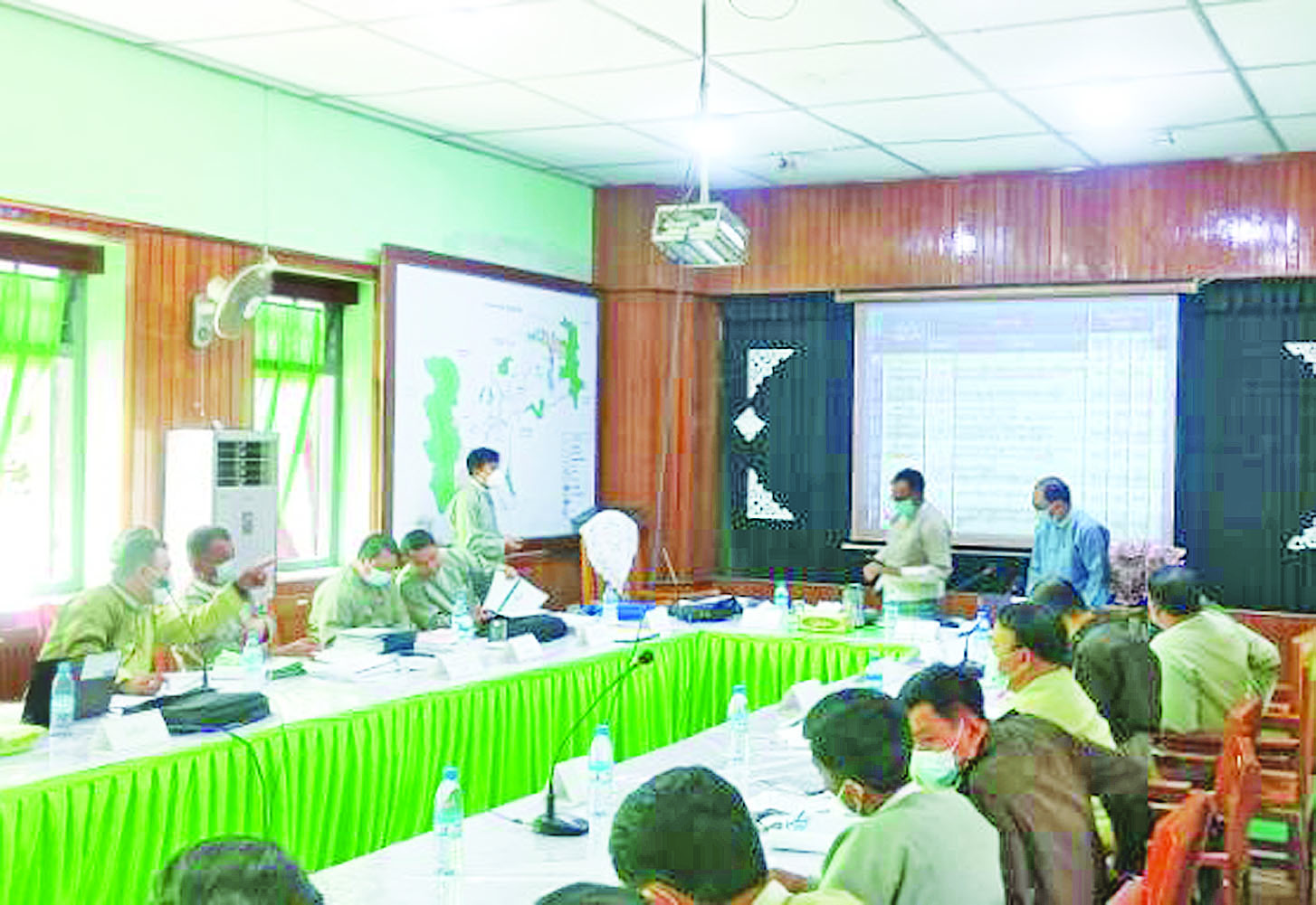 ယင်းနောက် အစည်းအဝေးသို့ တက်ရောက်လာသူများက မဲဆန္ဒရှင်စာရင်း ပြည့်စုံမှန်ကန်ရေး၊ မဲရုံတည်နေရာသတ်မှတ်အတည်ပြုနိုင်ရေးနှင့် မဲရုံသုံးပစ္စည်းများ လိုအပ်ချက်တို့နှင့်စပ်လျဉ်း၍ ဆွေးနွေးညှိနှိုင်းဆောင်ရွက်ခဲ့ကြောင်း သိရသည်။