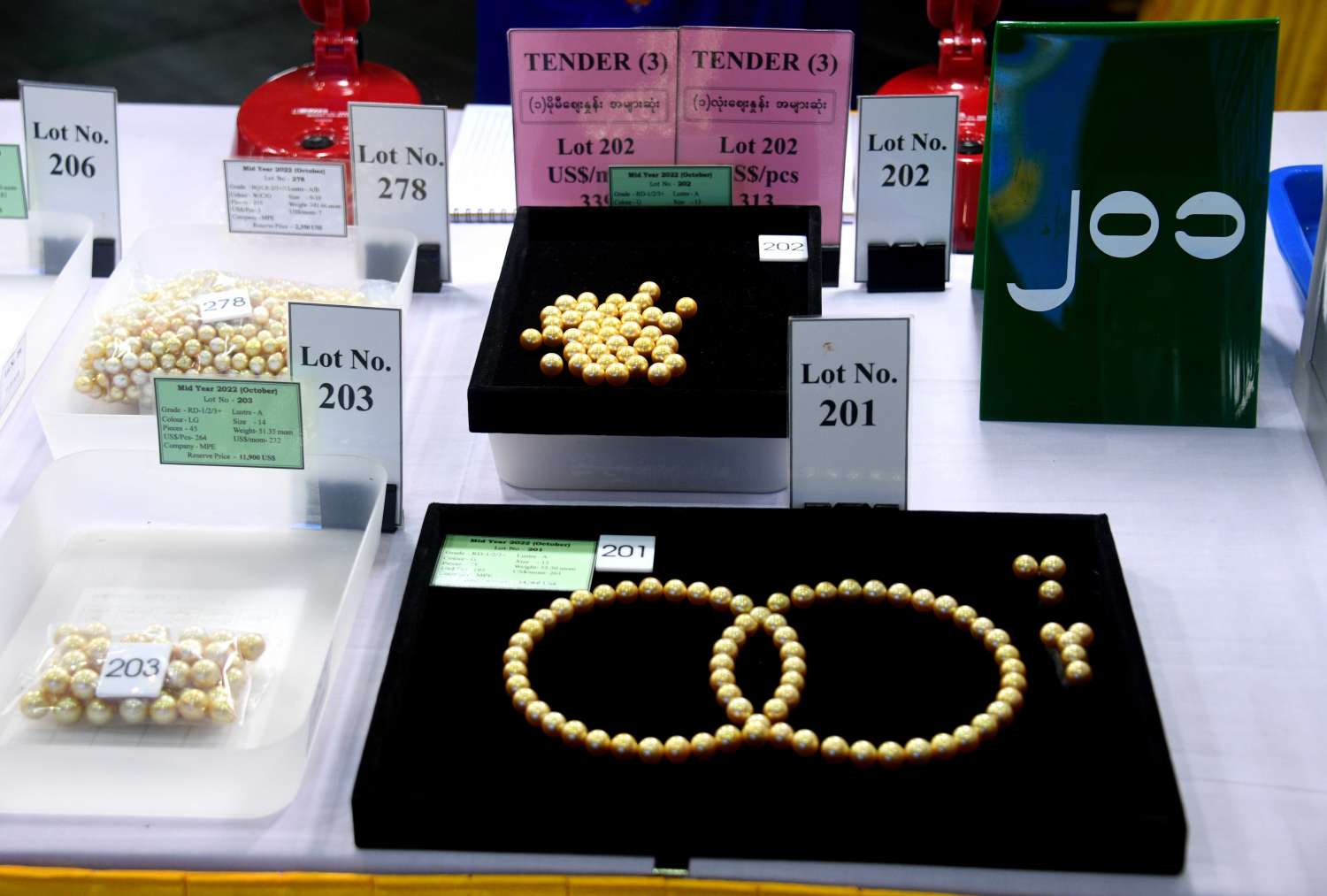 ထို့နောက် ရတနာကုန်သည်များသည် အိတ်ဖွင့်တင်ဒါစနစ်ဖြင့် ရောင်းချမည့် ပုလဲအတွဲများ၊ ကျောက်မျက်နှင့် ကျောက်စိမ်းအတွဲများအတွက် ဈေးနှုန်း တင်သွင်းလွှာများကို သက်ဆိုင်ရာ တင်ဒါပုံးများ အတွင်းသို့ ထည့်သွင်းကြသည်။