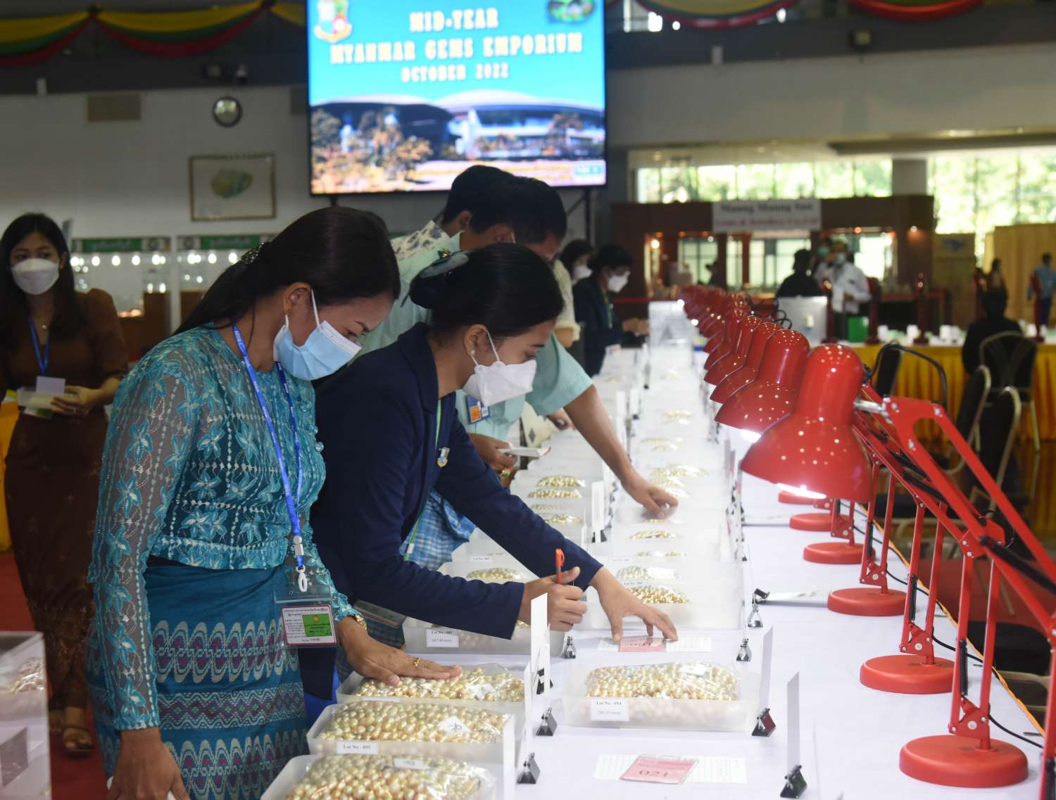 နံနက်ပိုင်းမှ စတင်၍ ပြည်တွင်း၊ ပြည်ပ ရတနာကုန်သည်များသည် ခန်းမအတွင်း ပြသထားသည့် ပုလဲအတွဲများ၊ ကျောက်စိမ်း၊ ကျောက်မျက်အတွဲများနှင့် ခန်းမအပြင်ဘက် သတ်မှတ်နေရာများအလိုက် ခင်းကျင်းပြသထားသည့် ကျောက်စိမ်းအရိုင်း အတွဲများကို စိတ်ကြိုက် လေ့လာကြည့်ရှုကြသည်။