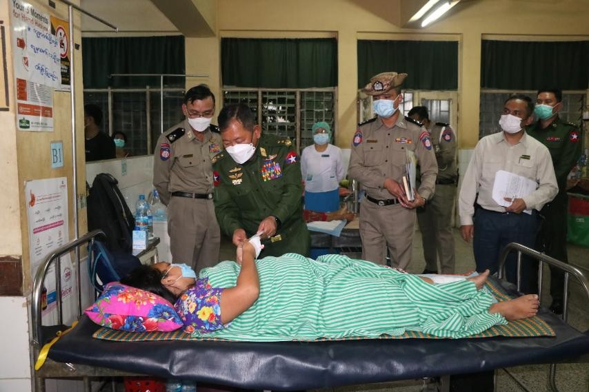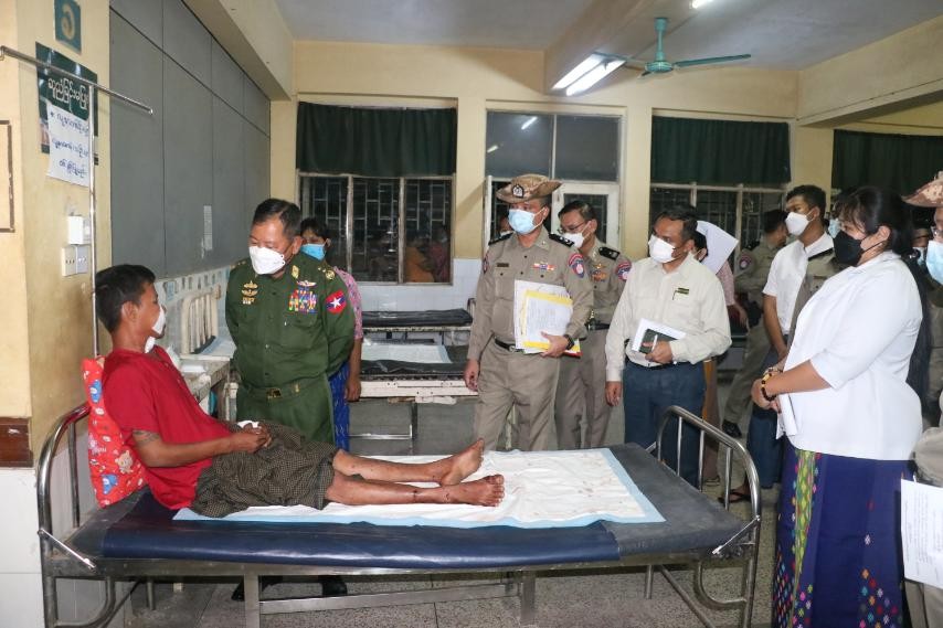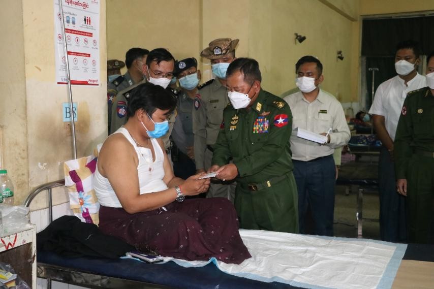 ညနေပိုင်းတွင် ပြည်ထောင်စုဝန်ကြီးနှင့် အဖွဲ့သည် အင်းစိန်မြို့နယ်ရှိ မြို့နယ်ပြည်သူ့ ဆေးရုံကြီးသို့ သွားရောက်ကာ အကျဉ်းထောင် ပေါက်ကွဲမှု ဖြစ်စဉ်အတွင်း သေဆုံး၊ ထိခိုက်ဒဏ်ရာ ရရှိခဲ့ကြသည့် အကျဉ်းဦးစီးဌာနမှ ဝန်ထမ်းများနှင့် ပြည်သူများကို တွေ့ဆုံပြီး နှစ်သိမ့် အားပေးစကားပြောကြားကာ ထောက်ပံ့ပစ္စည်းများ ပေးအပ်ခဲ့ကြောင်း သိရသည်။