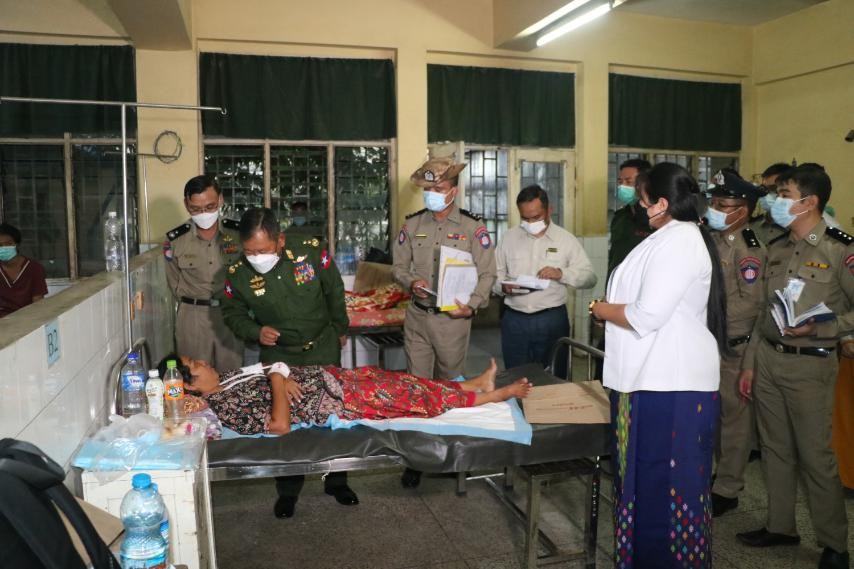 ထိုသို့ရောက်ရှိစစ်ဆေးစဉ် ယနေ့နံနက် ၉ နာရီ မိနစ် ၄၀ က အကြမ်းဖက်သမားများ၏ ပါဆယ်ထုပ်အတွင်း လက်လုပ်မိုင်းထည့်သွင်းကာ အကြမ်းဖက်ဖောက်ခွဲ တိုက်ခိုက်ခဲ့သဖြင့် အင်းစိန် ဗဟိုအကျဉ်းထောင်၏ ဝင်/ထွက်ဂိတ်ပေါက်ရှိ အကျဉ်းသားများအတွက် ပါဆယ်ထုပ် လက်ခံသည့် အဆောက်အဦ အတွင်းနှင့် အပြင်ဘက်တို့တွင် ပေါက်ကွဲမှုများ ဖြစ်ပွားခဲ့မှုကြောင့် အကျဉ်းထောင် ဝန်ထမ်း ၃ ဦးနှင့် အကျဉ်းသားများအတွက် ပါဆယ်ထုပ် လာရောက်ပေးပို့ သူများဖြစ်ကြသည့် အရပ်သားပြည်သူ ၅ ဦး၊ စုစုပေါင်း ၈ ဦးတို့တွင် မိုင်းစထိမှန် ဒဏ်ရာ များရရှိကာ အခင်းဖြစ်နေရာ၌ သေဆုံးသွားခဲ့ကြပြီး အကျဉ်းထောင် ဝန်ထမ်း ၅ ဦးနှင့် အရပ်သားပြည်သူ ၁၃ ဦး၊ စုစုပေါင်း ၁၈ ဦးတို့ ထိခိုက်ဒဏ်ရာရရှိခဲ့သည့် ဖြစ်စဉ်မှ ပေါက်ကွဲမှုဖြစ်ပွားခဲ့သည့် အခင်းဖြစ်ရပ် အခြေအနေကို အသေးစိတ်သွားရောက် ကြည့်ရှုစစ်ဆေးသည်။
