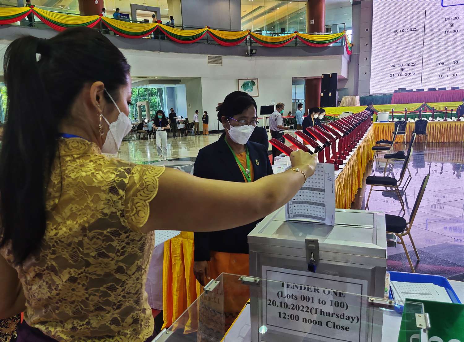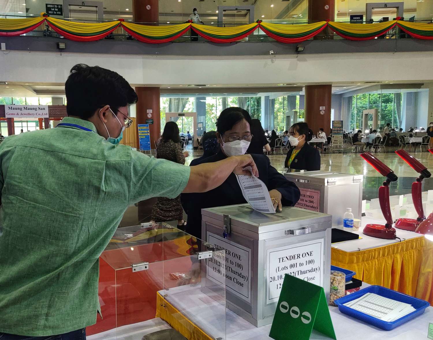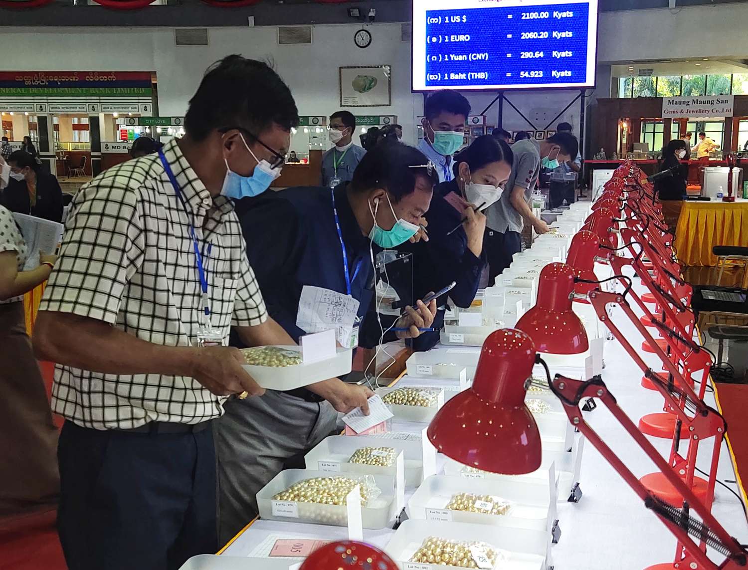 ယနေ့ပြပွဲတွင်ရောင်းချမည့် ပုလဲအတွဲအမှတ် ၁ မှ အတွဲအမှတ် ၂၀၀ အထိ ပုလဲအတွဲများကို ပြည်တွင်း၊ ပြည်ပ ရတနာကုန်သည်များက ကြည့်ရှုစစ်ဆေးကြပြီး ဈေးနှုန်းတင်သွင်းလွှာများကို တင်ဒါပုံးများအတွင်းသို့ ထည့်သွင်းကြသည်။