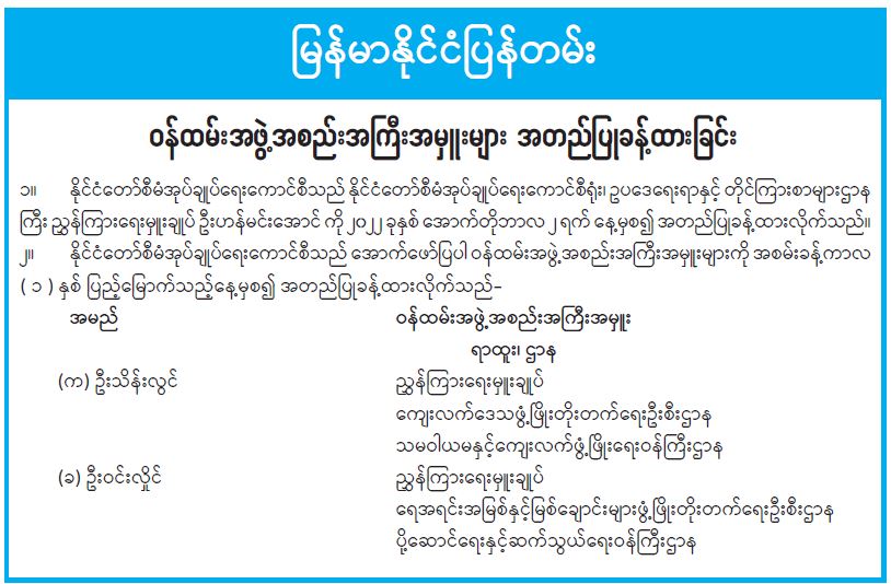 ဝန်ထမ်းအဖွဲ့အစည်းအကြီးအမှူးများ အတည်ပြုခန့်ထားခြင်း
