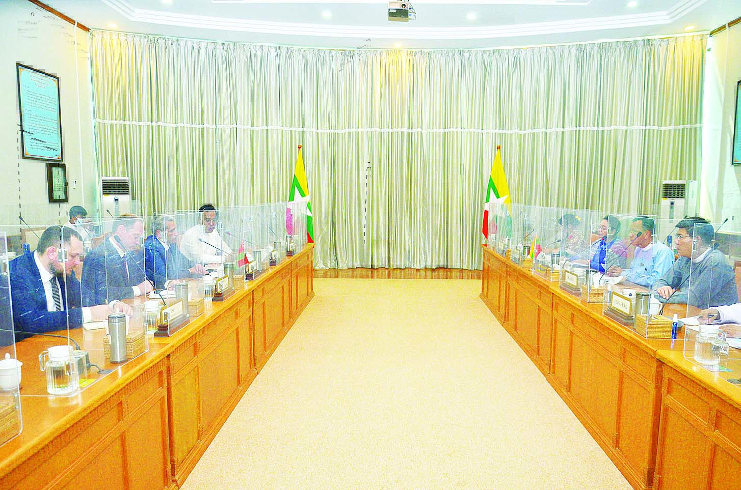 ရင်းနှီးမြှုပ်နှံမှုနှင့် နိုင်ငံခြားစီးပွား ဆက်သွယ်ရေးဝန်ကြီးဌာန ပြည်ထောင်စုဝန်ကြီး ဒေါက်တာ ကံဇော်သည် မြန်မာနိုင်ငံဆိုင်ရာ ဘယ်လာရုစ် သံအမတ်ကြီး H.E. Mr. Uladzimir Baravikou အား ယနေ့မွန်းတည့် ၁၂ နာရီတွင် နေပြည်တော်ရှိ ရင်းနှီးမြှုပ်နှံမှုနှင့် နိုင်ငံခြားစီးပွား ဆက်သွယ်ရေး ဝန်ကြီးဌာန ရုံးအမှတ် (၁) ၌ လက်ခံတွေ့ဆုံသည်။