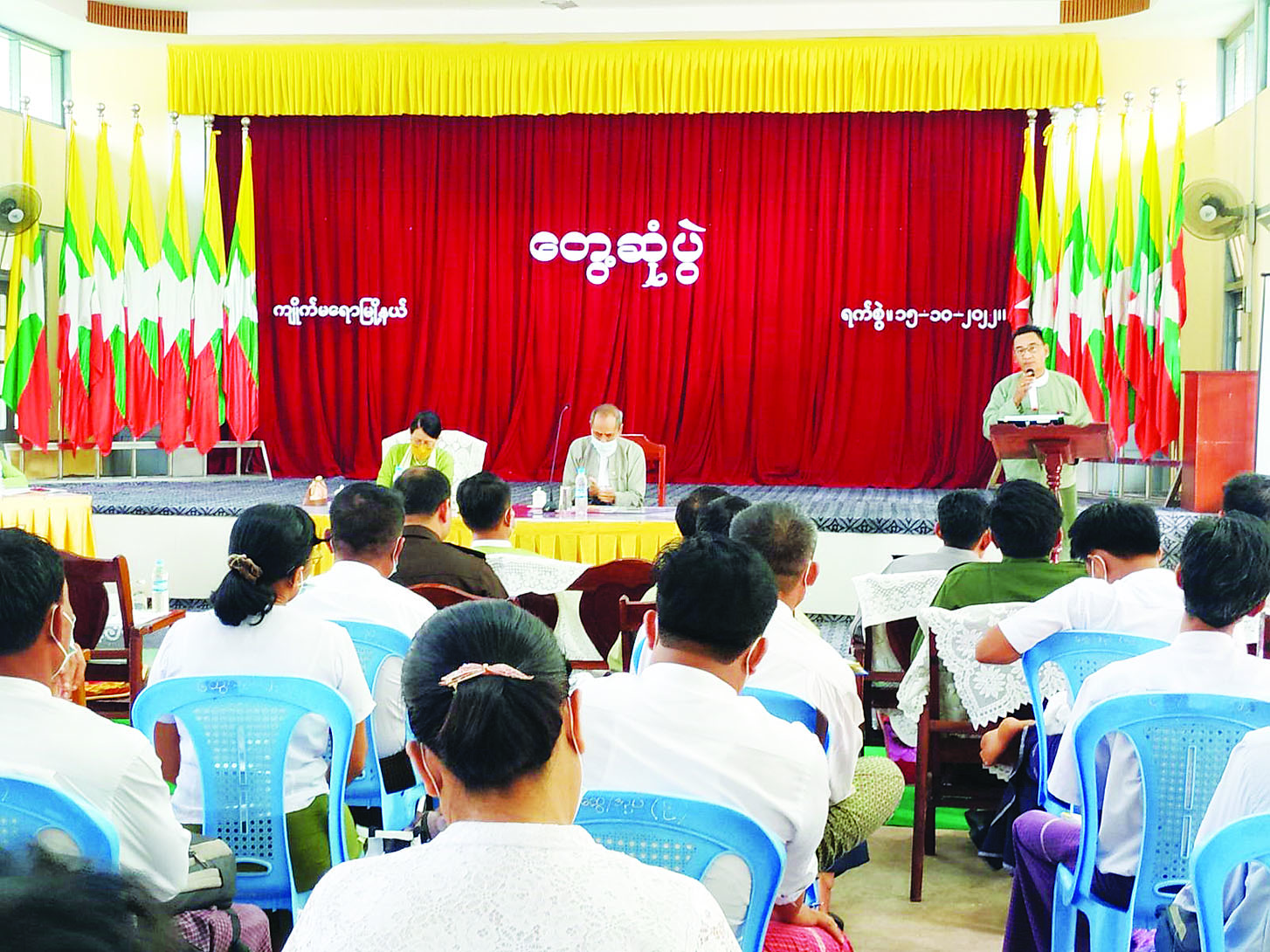 ထိုသို့ ဆောင်ရွက်ခြင်းကို သက်ဆိုင်ရာမြို့နယ်အထွေထွေအုပ်ချုပ်ရေးဦးစီးဌာန အစည်းအဝေး ခန်းမများတွင် ဆောင်ရွက်ခဲ့ပြီး သက်ဆိုင်ရာမြို့နယ်များရှိ မြို့နယ်အထွေထွေအုပ်ချုပ်ရေးဦးစီးဌာန မြို့နယ်အုပ်ချုပ်ရေးမှူးများ၊ တပ်နယ်မှူးများ၊ မြို့နယ်လူဝင်မှုကြီးကြပ်ရေးနှင့် ပြည်သူ့အင်အားဦးစီးဌာန ဦးစီးမှူးများ၊ မြို့နယ်ရွေးကောက်ပွဲကော်မရှင် အဖွဲ့ခွဲတို့မှ တာဝန်ရှိသူများ၊ သက်ဆိုင်ရာရပ်ကွက်နှင့် ကျေးရွာ အုပ်စုများရှိ ရပ်/ကျေး စာရေးများ တက်ရောက်ခဲ့ကြကြောင်း သိရသည်။