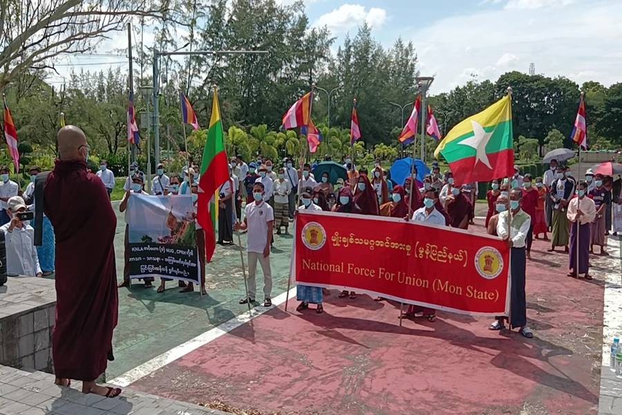အဆိုပါဖြစ်စဉ်နှင့်ပတ်သက်၍ ပြင်းထန်စွာရှုတ်ချကြောင်းကို ယနေ့တွင် မွန်ပြည်နယ်၊ မော်လမြိုင်မြို့ရှိ သံဃာတော်များနှင့် မော်လမြိုင်မြို့နေ အကြမ်းဖက်မှုများကို မလိုလားသော ဒေသခံပြည်သူများ စုပေါင်း၍ မော်လမြိုင်မြို့၊ ဘိုကုန်းရပ်ကွက်၊ အထက်လမ်းမကြီးရှိ သံလွင်ဉယျာဉ်ပန်းခြံအတွင်း “KNU၊ NUG၊ PDF တို့ ဗုဒ္ဓဘာသာကို အကြမ်းဖက်သောနေ့၊ ဘုရားဖူးပြည်သူများ အကြမ်းဖက်မှုကို ဆန့်ကျင်ကြ၊ KNLA တပ်မဟာ(၁) အကြမ်းဖက်အဖွဲ့ကို အလိုမရှိ၊ တရားမဝင် NUG၊ CRPH အလိုမရှိ၊ NUG၊ CRPH လက်ဝေခံ PDF အဖွဲ့ကို အလိုမရှိ” စသည့် ပိုစတာများ၊ ဆိုင်းဘုတ်များ ကိုင်ဆောင်ကာ ကြွေးကြော်သံများဖြင့် ကြွေးကြော်၍ အေးချမ်းစွာ ဆန္ဒထုတ်ဖော်ခဲ့ကြကြောင်း သတင်းရရှိသည်။