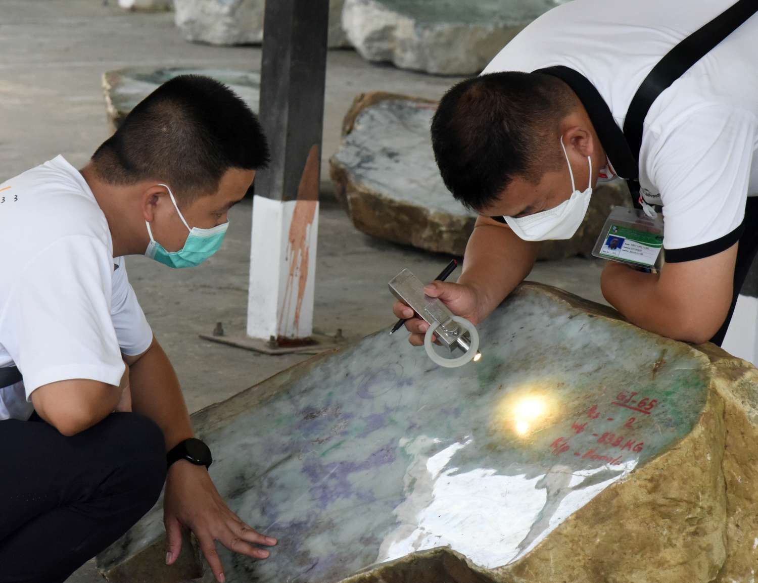 နံနက်ပိုင်းမှစတင်၍ ပြည်တွင်း၊ ပြည်ပ ရတနာကုန်သည်များသည် မဏိရတနာ ကျောက်စိမ်းခန်းမအပြင်ဘက် သတ်မှတ်နေရာများအလိုက် ခင်းကျင်းပြသထားသည့် ကျောက်စိမ်းအတွဲများနှင့် ကျောက်စိမ်းအရိုင်းတွဲများကို စိတ်ကြိုက်လေ့လာ ကြည့်ရှုကြသည်။