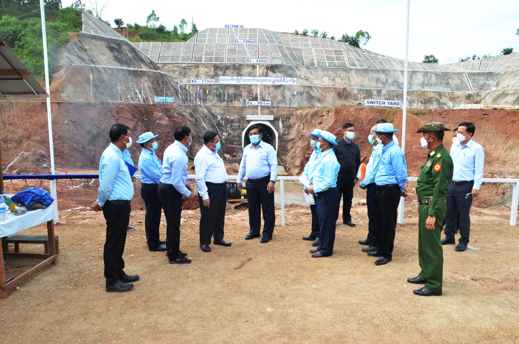 ထို့နောက် ပြည်ထောင်စုဝန်ကြီးနှင့်အဖွဲ့သည် စီမံကိန်းလုပ်ငန်းခွင်အတွင်း ပင်မတမံတည်ဆောက်ခြင်း ပြီးစီးနေမှု၊ ပင်မရေပိုလွှဲလုပ်ငန်း တည်ဆောက်ခြင်း ဆောင်ရွက်မှု၊ ရေယူအဆောက်အအုံ ကျောက်သားနံရံ ခိုင်ခန့်မှုလုပ်ငန်း ဆောင်ရွက်ပြီးစီးမှု၊ ရေထိန်းတံခါး ပြွန်တည်ဆောက်ပြီးစီးနေမှု အခြေအနေ၊ ရေသွယ်ဥမင်လိုဏ်၊ ရေထိန်းတံခါးပြွန်နှင့် ဖိအားမြင့်သံမဏိပိုက်လိုင်း Structure ကွန်ကရစ်လုပ်ငန်းများ ဆောင်ရွက်ပြီးစီးနေနှင့် ဓာတ်အားပေးစက်ရုံ တည်ဆောက်ခြင်းလုပ်ငန်း ဆောင်ရွက်ပြီးစီးမှုတို့ကို လှည့်လည်ကြည့်ရှုစစ်ဆေးရာ တာဝန်ရှိသူများက ရှင်းလင်းတင်ပြကြပြီး ပြည်ထောင်စုဝန်ကြီးက လိုအပ်သည်များကို ဖြည့်ဆည်းဆောင်ရွက်ပေးသည်။