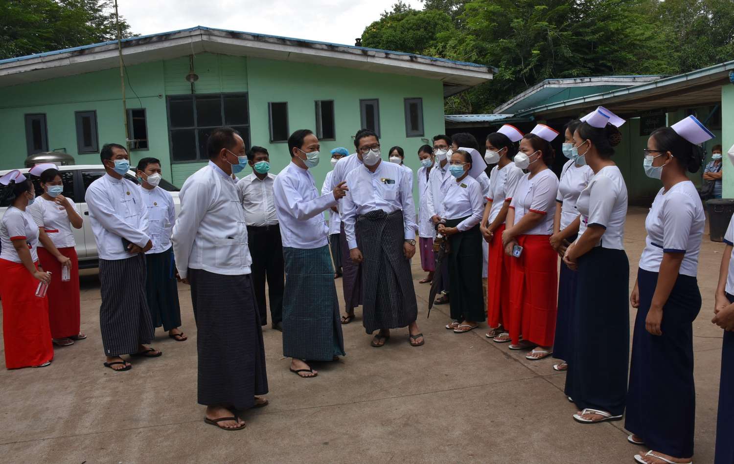 ဆက်လက်၍ ပြည်ထောင်စုဝန်ကြီးသည် မှော်ဘီမြို့နယ် (ခုတင်-၅၀ဆံ့) ပြည်သူ့ဆေးရုံသို့ ရောက်ရှိပြီး မြို့နယ်ကုသရေးဦးစီးဌာနမှူး၊ ဒေါက်တာစောမြနှင့် တာဝန်ရှိသူများနှင့် တွေ့ဆုံကာ လိုအပ်သည်များ ပေါင်းစပ်ညှိနှိုင်း ဖြည့်ဆည့်ဆောင်ရွက်ပေးကာ ဆေးရုံအတွင်း ကြည့်ရှုစစ်ဆေးခဲ့ကြောင်း သိရသည်။
