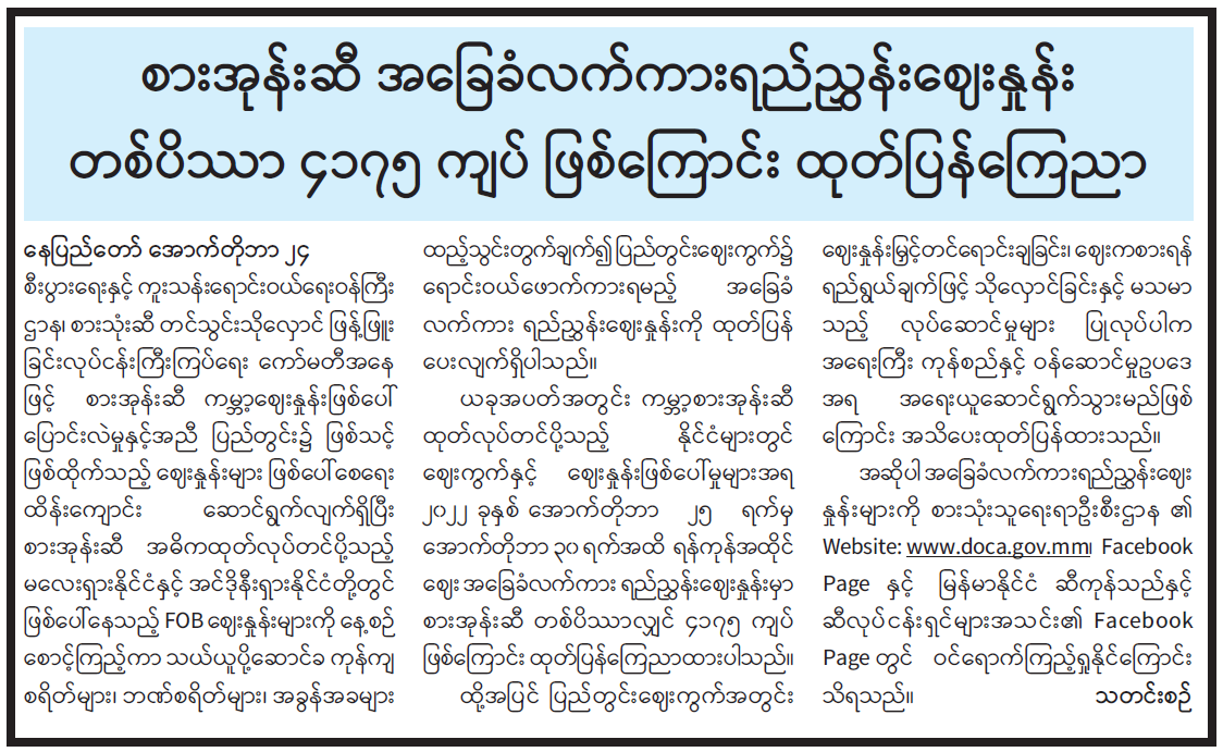 ဝန်ကြီးဌာန ကြေညာချက်များ