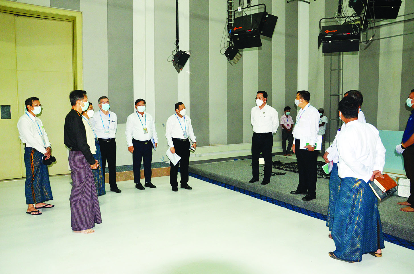 ယင်းနောက် MRTV-News Channel အတွက် ယခုနှစ်ဘဏ္ဍာငွေ ခွင့်ပြုချက်ဖြင့် တည်ဆောက်လျက်ရှိသော News Studio သို့ ရောက်ရှိရာ တင်ဒါအောင်မြင်ထားသော Elevate Broadcast Myanmar Co.,Ltd နှင့် Arr Thit Man Technology Co.,Ltd တို့မှ တာဝန်ရှိသူများက လုပ်ငန်းဆောင်ရွက်မှု အခြေအနေများ ရှင်းလင်းတင်ပြမှုအပေါ် ပြည်ထောင်စုဝန်ကြီးက အရည်အသွေး ပြည့်မီစွာဖြင့် အချိန်မီပြီးစီးအောင် ဆောင်ရွက်ရန်မှာကြားသည်။