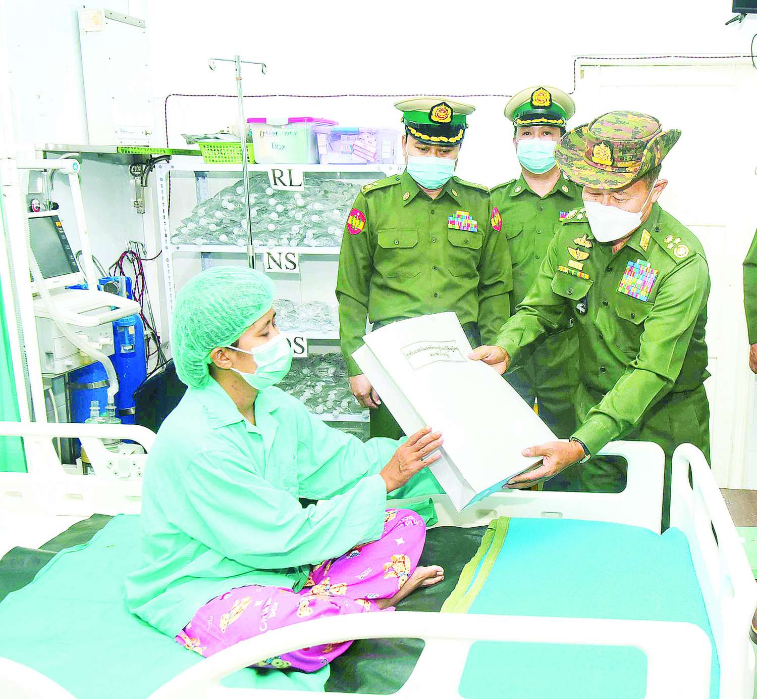 ထို့နောက် နိုင်ငံတော်စီမံအုပ်ချုပ်ရေးကောင်စီဒုတိယဥက္ကဋ္ဌ ဒုတိယတပ်မတော်ကာကွယ်ရေးဦးစီးချုပ် ကာကွယ်ရေးဦးစီးချုပ်(ကြည်း) သည် ဆေးရုံများတွင် တာဝန်ထမ်းဆောင်လျက်ရှိသည့် ကျန်းမာရေးဝန်ထမ်းများအတွက် ချီးမြှင့်ငွေများကိုပေးအပ်ရာ ဆေးရုံတပ်မှူးများက လက်ခံရယူကြသည်။