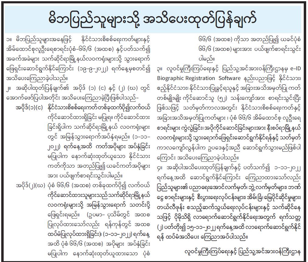 မိဘပြည်သူများသို့ အသိပေးထုတ်ပြန်ချက်