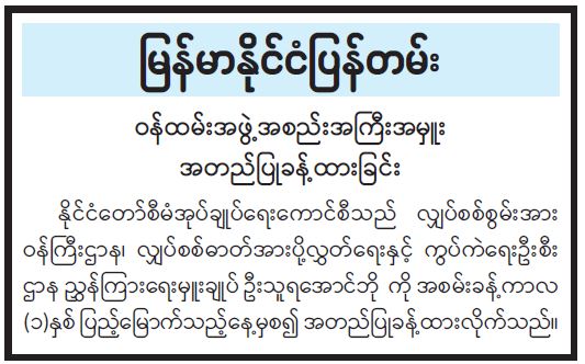 ဝန်ကြီးဌာန ကြေညာချက်များ