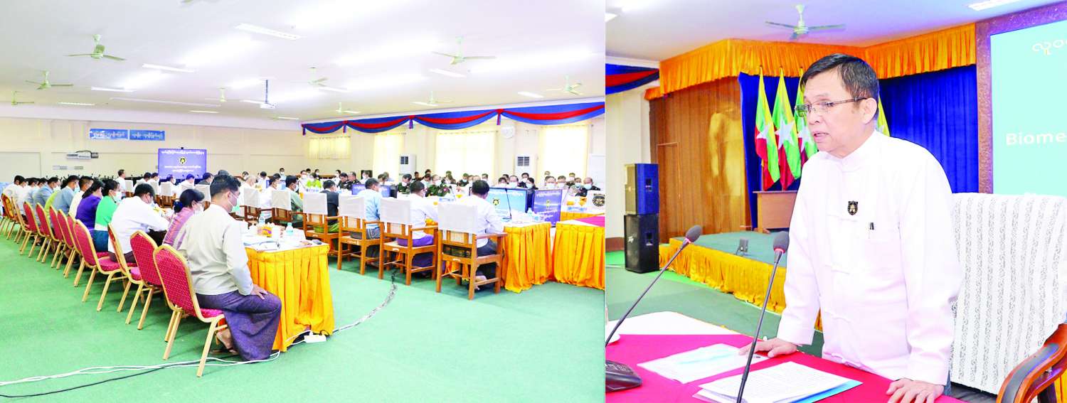 အစည်းအဝေးတွင် ပြည်ထောင်စုဝန်ကြီး ဦးမြင့်ကြိုင်က e-Government စနစ်၏ အခြေခံအကျဆုံး လုပ်ငန်းတစ်ရပ်ဖြစ်သည့် e-ID စနစ်လုပ်ငန်းကို မိမိတို့ ဝန်ကြီးဌာနက တာဝန်ယူ၍ ဆက်စပ်ဝန်ကြီးဌာနများမှ ဌာနဆိုင်ရာ အကြီး အကဲများပါဝင်သည့် အဖွဲ့ဝင် ၂၉ ဦးဖြင့် ဖွဲ့စည်းဆောင်ရွက်လျက်ရှိပါကြောင်း၊ ယင်းလုပ်ငန်းစဉ်ကို အကောင်အထည် ဖော်ရာတွင် အဓိကအားဖြင့် နိုင်ငံတွင်းနေထိုင်သူ အသက်(၁၀) နှစ်နှင့်အထက် နိုင်ငံသား၊ ဧည့်နိုင်ငံသား၊ နိုင်ငံသား ပြုခွင့်ရသူ၊ နိုင်ငံခြားသားအမြဲနေထိုင်ခွင့်ပြုသူ (PR)၊ အမြဲနေအခွန်ဆောင် နိုင်ငံခြား သားများ (FRC) စသည်တို့၏ ကိုယ်ရေးအချက်အလက် (Biographic Data) နှင့် ဇီဝဆိုင်ရာအချက်အလက် (Biometric Data)များ ကောက်ယူ၍ Database တွင် သိမ်းဆည်းပြီး Unique ID နံပါတ် (ဂဏန်း၁၀လုံး) သတ်မှတ် မှတ်ပုံတင်ထုတ်ပေးနိုင်ရေးပင် ဖြစ်ပါကြောင်း၊ e-ID စနစ်လုပ်ငန်းအတွက် လိုအပ်သည့် နည်းပညာနှင့် စက်ကိရိယာများဝယ်ယူ အသုံး ပြုနိုင်ရေးအတွက်လည်း ကော်မတီများဖွဲ့စည်းဆောင်ရွက်လျက်ရှိပါကြောင်း၊ ယခုအခါ တိုင်းဒေသကြီး/ပြည်နယ် အသီးသီး၏ Biographic Data များဖြစ်သည့် နိုင်-၄ ကိုယ်ရေးအချက်အလက် ၅၂ သန်းကျော်နှင့် အိမ်ထောင်စုလူဦးရေ စာရင်းပုံစံ (၆၆/၆) ၁၃ သန်းကျော်တို့ကို Database Server အတွင်း ထည့်သွင်းပြီးဖြစ်သည့်အတွက် လုပ်ငန်းစဉ်အလိုက် ဇီဝဆိုင်ရာအချက်အလက်များ (Biometric Data) ကောက်ယူနိုင်ရေး ဆက်လက်ဆောင်ရွက်ရမည် ဖြစ်ပါကြောင်း။