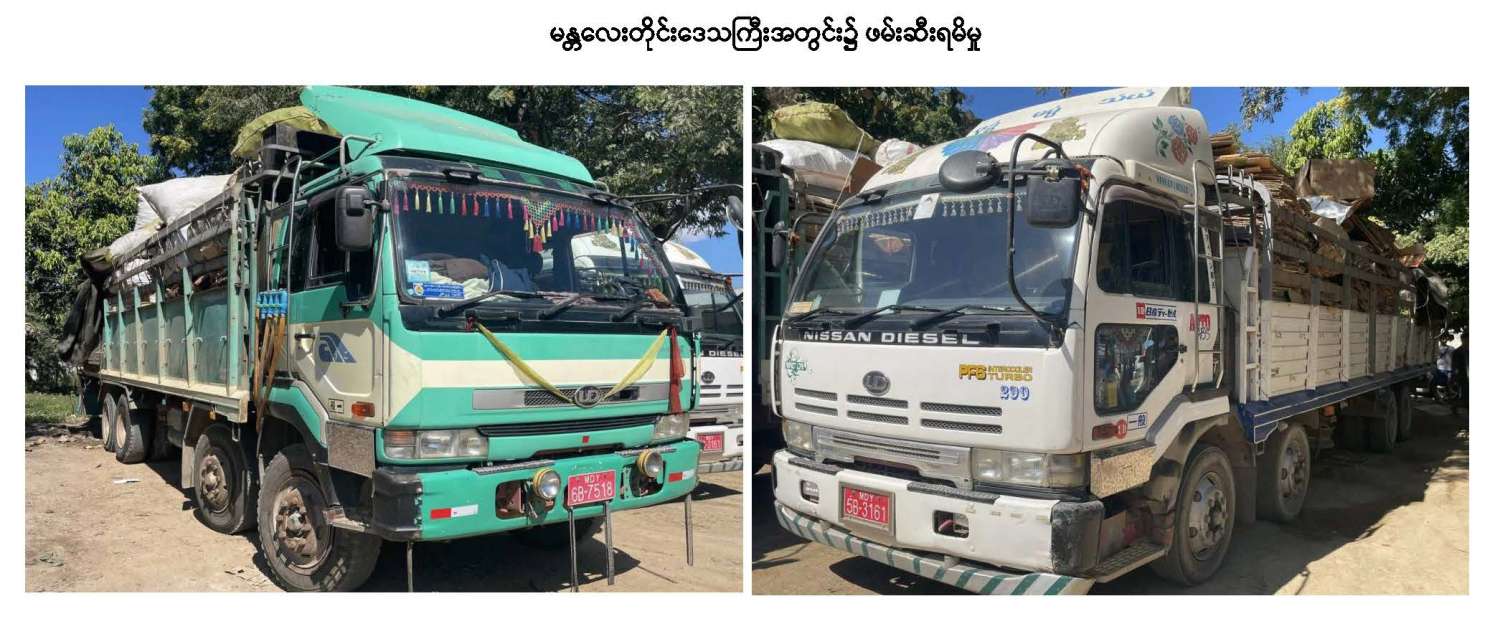 တရားမဝင် ကုန်သွယ်မှုတိုက်ဖျက်ရေးဦးဆောင်ကော်မတီ၏ ကြီးကြပ်ကွပ်ကဲမှုဖြင့် တရားမဝင်ကုန်သွယ်မှုများကို ဥပဒေနှင့်အညီ ထိရောက်စွာ တားဆီးအရေးယူနိုင်ရေး ဆောင်ရွက်လျက်ရှိရာ နိုဝင်ဘာ ၉ ရက်တွင် မန္တလေးတိုင်းဒေသကြီး တရားမဝင်ကုန်သွယ်မှုတိုက်ဖျက်ရေးအထူးအဖွဲ့၏ စီမံခန့်ခွဲမှုဖြင့် လက်ပံလှ-စဉ့်ကူး ယာယီစစ်ဆေးရေးဂိတ်၌ တာဝန်ကျပူးပေါင်းအဖွဲ့က စစ်ဆေးမှုများဆောင်ရွက်ခဲ့ရာ မော်တော်ယာဉ်(၂)စီးပေါ်၌ ကုန်ပစ္စည်းများအောက်တွင် သိုဝှက်သယ်ဆောင်လာသော တရားမဝင်ကျွန်းတံခါးချပ်ဆိုဒ်စုံ၊ ကျွန်းတံခါးကျည်းဘောင်နှင့် ကျွန်းခွဲသားဆိုဒ်စုံ (၄ ဒသမ ၉၂၉)တန် (ခန့်မှန်း တန်ဖိုးငွေကျပ် ၅,၈၇၁,၅၂၀)နှင့် အဆိုပါသစ်များ တင်ဆောင်လာသည့် Nissan Diesel အမျိုးအစား မော်တော်ယာဉ်(၂)စီး (ခန့်မှန်းတန်ဖိုးငွေကျပ် ၇၀,၀၀၀,၀၀၀) စုစုပေါင်း (ခန့်မှန်းတန်ဖိုး ငွေကျပ် ၇၅,၈၇၁,၅၂၀)ကို ဖမ်းဆီးရမိခဲ့ပြီး သစ်တောဥပဒေနှင့်အညီ အရေးယူဆောင်ရွက်လျက်ရှိသည်။