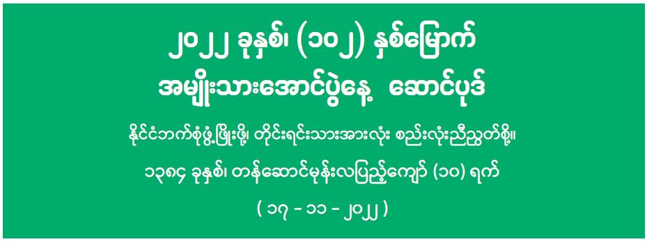 ၂၀၂၂ ခုနှစ်၊ (၁၀၂)နှစ်မြောက် အမျိုးသားအောင်ပွဲနေ့ဆောင်ပုဒ်