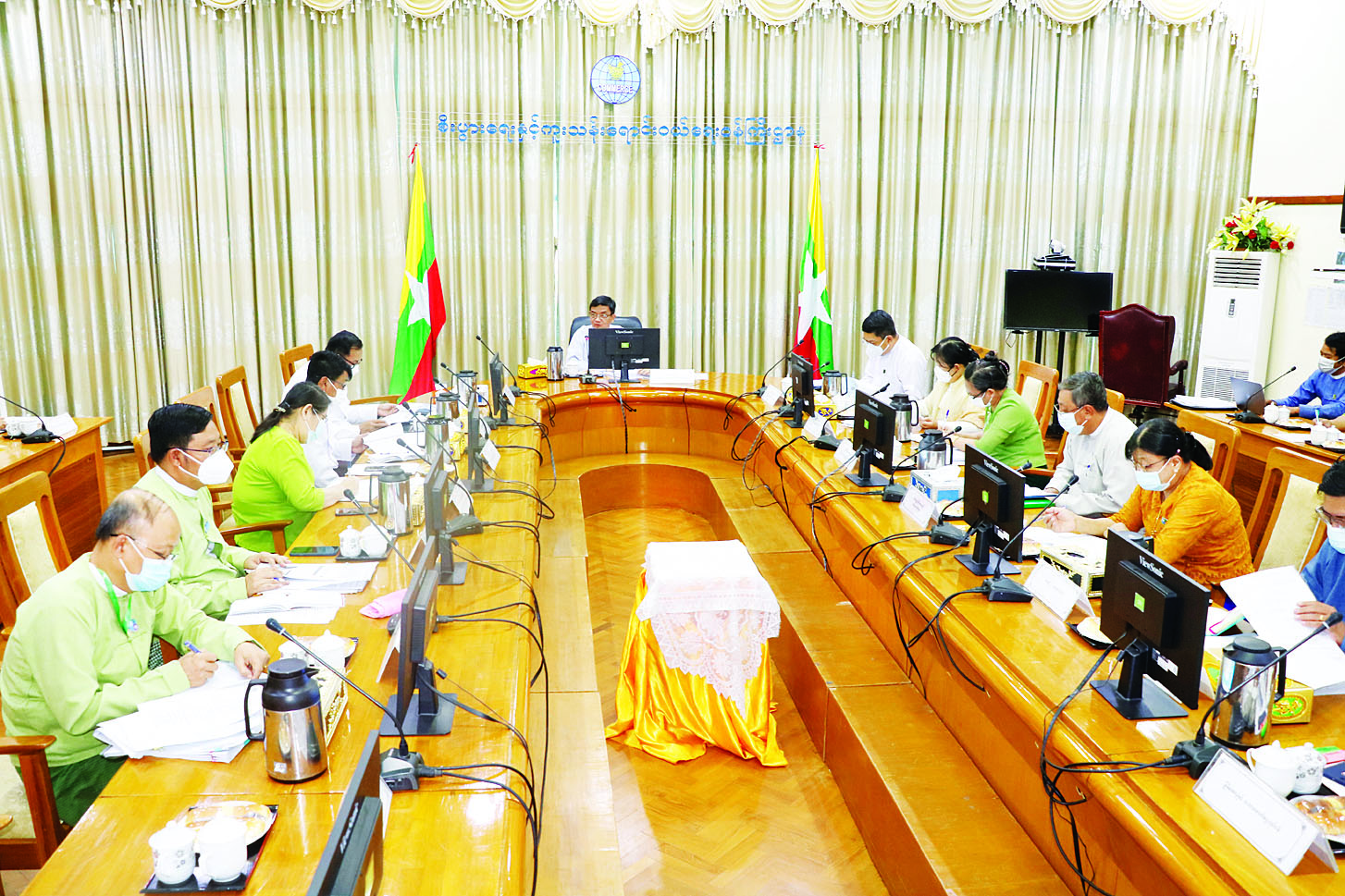 ၂၀၂၂ - ၂၀၂၃ ဘဏ္ဍာနှစ် ပို့ကုန်လျာထားချက်အပေါ် အကောင်အထည်ဖော်ဆောင်ရွက်နိုင်ရေးကိစ္စနှင့်စပ်လျဉ်းသည့် အစည်းအဝေးကို ယမန်နေ့မွန်းလွဲ ၂ နာရီတွင် နေပြည်တော်ရှိ စီးပွားရေးနှင့်ကူးသန်းရောင်းဝယ်ရေးဝန်ကြီးဌာန အစည်းအဝေးခန်းမ၌ Virtual စနစ်ဖြင့် ကျင်းပသည်။