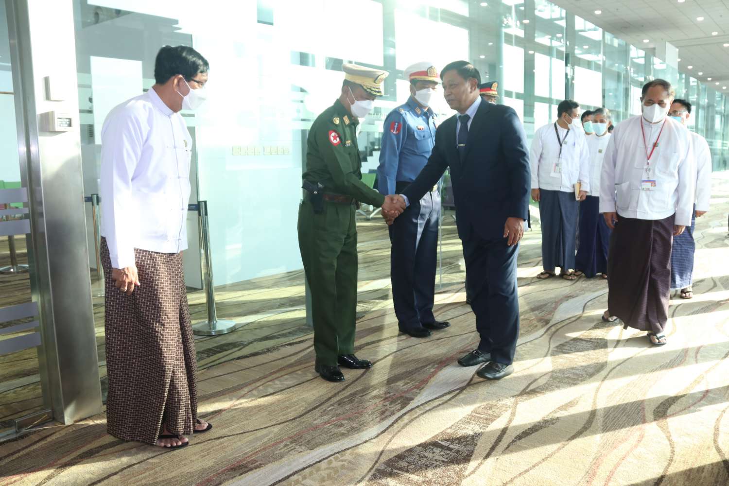 ခရီးစဉ်တွင် ပို့ဆောင်ရေးနှင့်ဆက်သွယ်ရေးဝန်ကြီးဌာန အမြဲတမ်းအတွင်းဝန်နှင့် တာဝန်ရှိသူများ လိုက်ပါသွားကြပြီး ရန်ကုန်တိုင်းဒေသကြီးဝန်ကြီးချုပ် ဦးစိုးသိန်း၊ ရန်ကုန်တိုင်းစစ်ဌာနချုပ် တိုင်းမှူး ဗိုလ်ချုပ်ညွန့်ဝင်းဆွေနှင့် ဝန်ကြီးဌာနမှ တာဝန်ရှိသူများက လေဆိပ်၌ ပို့ဆောင်နှုတ်ဆက်ခဲ့ကြကြောင်း သိရသည်။