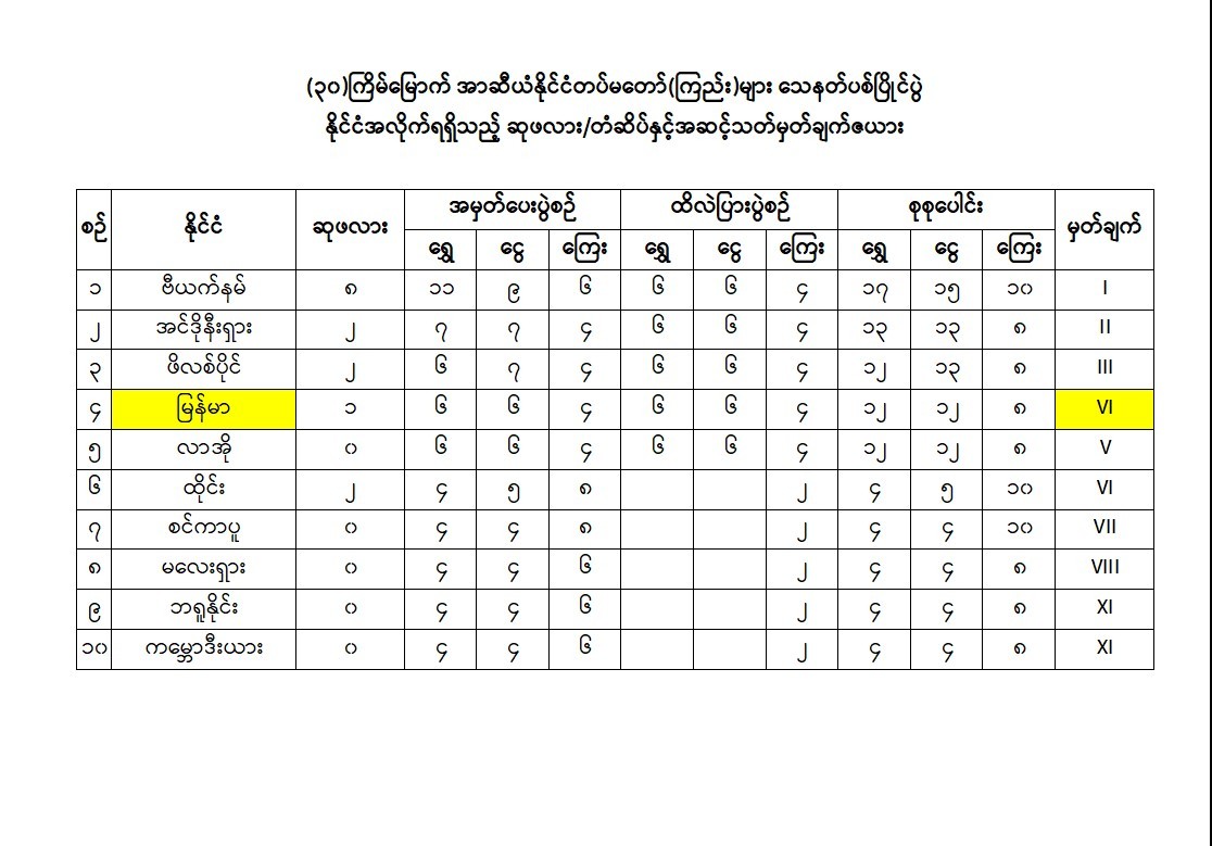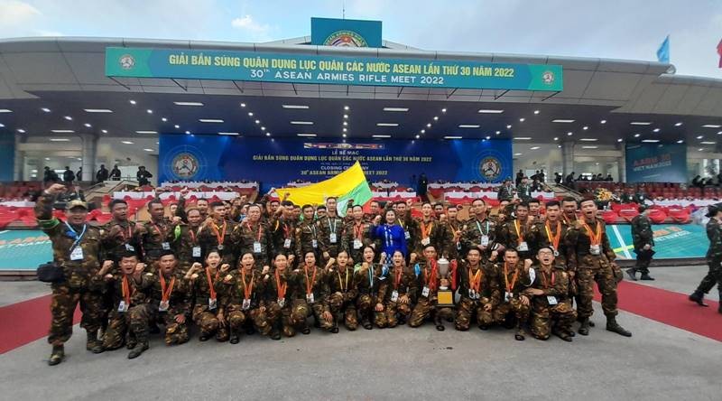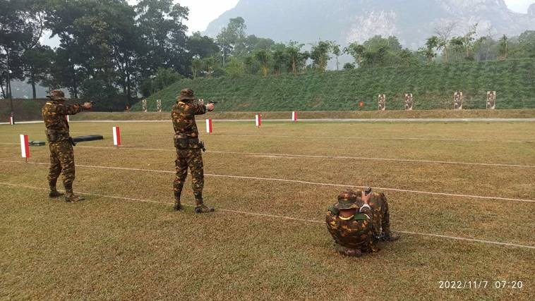 မြန်မာ့တပ်မတော် သေနတ်ပစ်အသင်းတွင် အသင်းခေါင်းဆောင် ဒုတိယဗိုလ်မှူးကြီး သိန်းစိုးထွန်း ဦးဆောင်၍ အုပ်ချုပ်သူ၊ နည်းပြများနှင့် သေနတ်ပစ်အားကစားသမား စုစုပေါင်း ၄၂ ဦးတို့ ပါဝင်ခဲ့ကြပြီး ပစ္စတိုအမျိုးသားအသင်း၊ ပစ္စတိုအမျိုးသမီးအသင်း၊ ကာဘိုင်အမျိုးသားအသင်း၊ ရိုင်ဖယ်အမျိုးသားအသင်းနှင့် စက်သေနတ်အမျိုးသားအသင်းတို့ ဝင်ရောက်ယှဉ်ပြိုင်ကစားခဲ့ကြရာ အသင်းလိုက် အမှတ်ပေးပြိုင်ပွဲတွင် ရွှေတံဆိပ် ၆ ခု၊ ငွေတံဆိပ် ၆ ခု၊ ကြေးတံဆိပ် ၄ ခု၊ ထိလဲပြား ပစ်ခတ်စဉ်ပြိုင်ပွဲတွင် ရွှေတံဆိပ် ၆ ခု၊ ငွေတံဆိပ် ၆ ခု၊ ကြေးတံဆိပ် ၄ ခု တို့ရရှိခဲ့ပြီး စုစုပေါင်း ရွှေတံဆိပ် ၁၂ ခု၊ ငွေတံဆိပ် ၁၂ ခု၊ ကြေးတံဆိပ် ၈ ခုဆွတ်ခူးရရှိခဲ့ကာ နိုင်ငံအလိုက် စတုတ္ထအဆင့်တွင် ရပ်တည်နိုင်ခဲ့သည်။ ပြိုင်ပွဲတွင် လာအိုတပ်မတော်မှ သေနတ်ပစ် အသင်းအနေဖြင့် မြန်မာ့တပ်မတော် သေနတ်ပစ်အသင်းနည်းတူ ဆုတံဆိပ်ရရှိမှုများ တူညီခဲ့သော်လည်း ရိုင်ဖယ်ပစ်ခတ်စဉ် ပြိုင်ပွဲအမှတ်ပေးပွဲစဉ်(၁)တွင် မြန်မာအသင်းမှ ရမှတ်ပေါင်း ၃၃၅.၁၄ မှတ်ရရှိခဲ့ပြီး လာအိုအသင်းမှ ရမှတ်ပေါင်း ၂၂၀.၀၅ မှတ်သာ ရရှိခဲ့ခြင်းကြောင့် နိုင်ငံအလိုက် အဆင့်သတ်မှတ်ချက် မြင့်တက်ခဲ့ခြင်းဖြစ်ကြောင်း သိရှိရသည်။