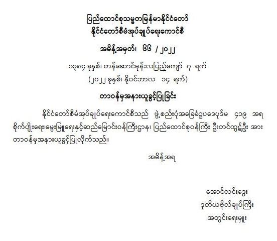 ဝန်ကြီးဌာန ကြေညာချက်များ