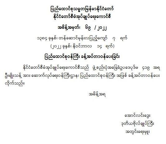 ဝန်ကြီးဌာန ကြေညာချက်များ
