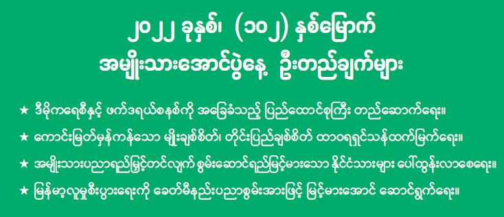 ၂၀၂၂ ခုနှစ်၊ (၁၀၂) နှစ်မြောက် အမျိုးသားအောင်ပွဲနေ့ ဦးတည်ချက်များ