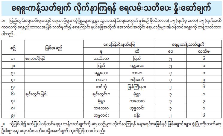 ရန်ကုန်မြို့နှင့် မန္တလေးမြို့အတွက် ရည်ညွှန်းလက်ကားဈေးနှုန်းများနှင့် ပြည်ထောင်စုနယ်မြေ နေပြည်တော်၊ တိုင်းဒေသကြီး/ပြည်နယ် မြို့တော်များအတွက် ရည်ညွှန်းလက်လီဈေးနှုန်းများ