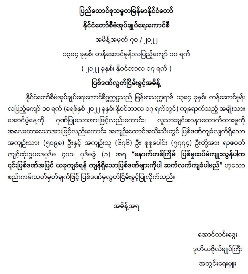 ဝန်ကြီးဌာန ကြေညာချက်များ