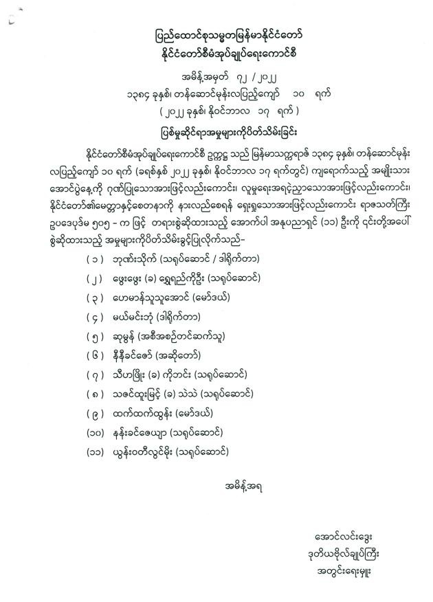 ဝန်ကြီးဌာန ကြေညာချက်များ