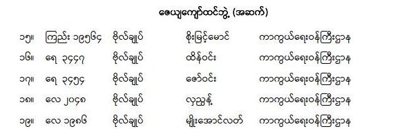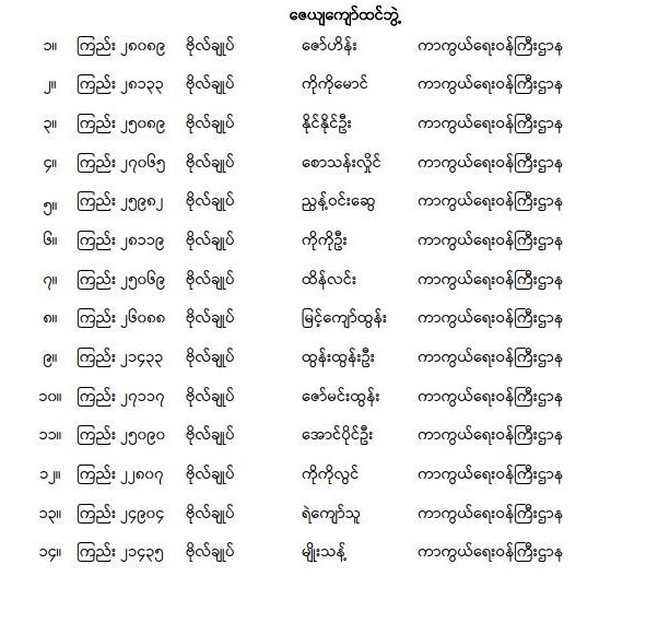 ဇေယျကျော်ထင်ဘွဲ့ (၁၉)ဦး