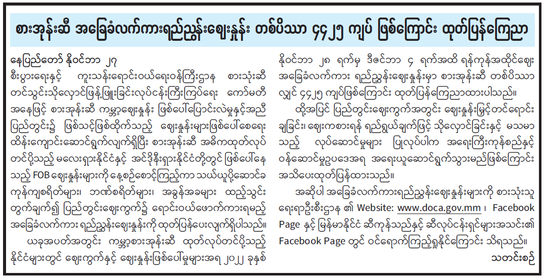 ဝန်ကြီးဌာန ကြေညာချက်များ
