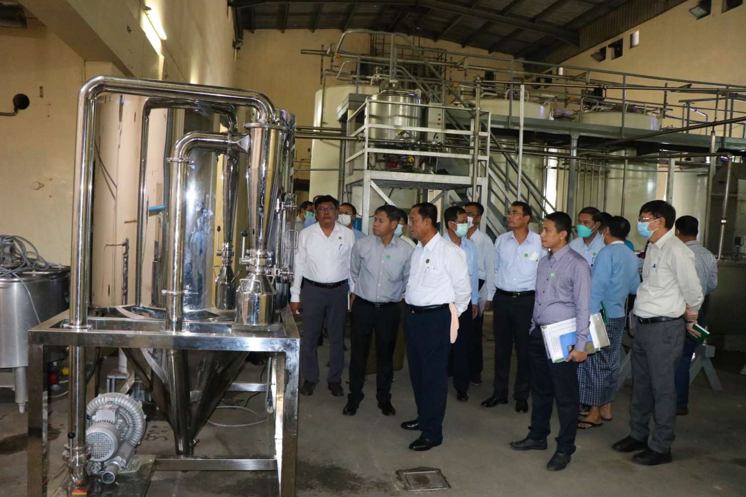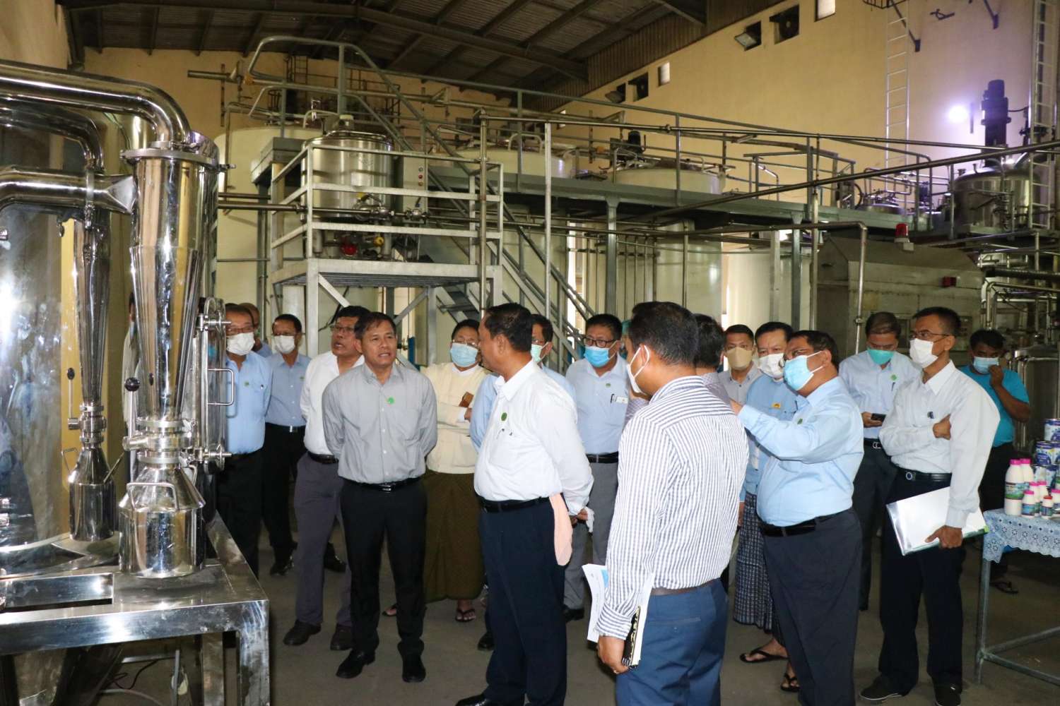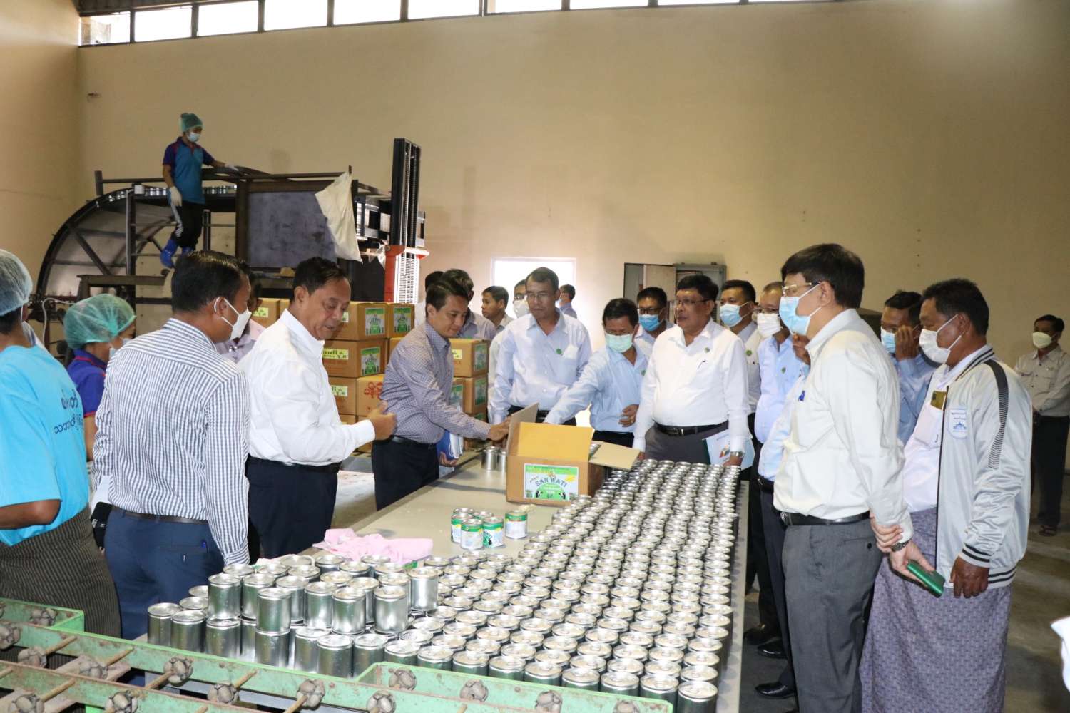 မန္တလေးတိုင်းဒေသကြီးသမဝါယမအသင်းစုချုပ်ပိုင် မန္တလေးနို့ချက်စက်ရုံ ပြန်လည်လည်ပတ်နိုင်ရေး နိုင်ငံတော်ဝန်ကြီးချုပ်၏ လမ်းညွှန်ချက်အရ မန္တလေးတိုင်းဒေသကြီး သမဝါယမအသင်းစုချုပ်နှင့် စမ်းဝတီမွေးမြူရေးနှင့် သဘာဝမြေဩဇာထုပ်လုပ်ရေးသမဝါယမအသင်းလီမိတက်တို့ အကျိုးတူပူးပေါင်း၍ စက်ရုံအကြီးစားပြင်ဆင်ဆောင်ရွက်နေမှုအခြေအနေ၊ ကုန်ကြမ်းရရှိမှုအခြေအနေ၊ နို့ချက်စက်ရုံစမ်းသပ်လည်ပတ်ဆောင်ရွက်နေမှုအခြေအနေများကို ယနေ့နံနက်ပိုင်းက စိုက်ပျိုးရေး၊ မွေးမြူရေးနှင့်ဆည်မြောင်းဝန်ကြီးဌာန၊ သမဝါယမနှင့်ကျေးလက်ဖွံ့ဖြိုးရေးဝန်ကြီးဌာန ပြည်ထောင်စုဝန်ကြီး ဦးလှမိုးနှင့် သက်ဆိုင်ရာတာဝန်ရှိသူများ ကြည့်ရှုစစ်ဆေးကြသည်။