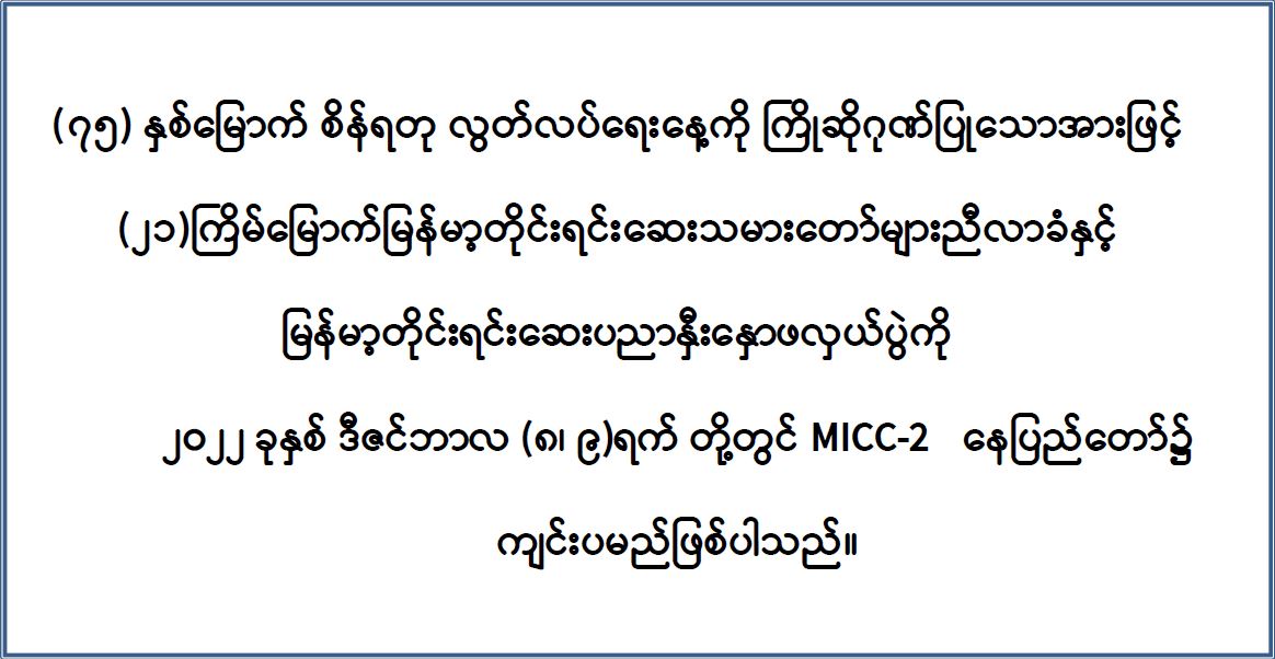 ရန်ကုန်မြို့နှင့် မန္တလေးမြို့အတွက် ရည်ညွှန်းလက်ကားဈေးနှုန်းများနှင့် ပြည်ထောင်စုနယ်မြေ နေပြည်တော်၊ တိုင်းဒေသကြီး/ပြည်နယ် မြို့တော်များအတွက် ရည်ညွှန်းလက်လီဈေးနှုန်းများ
